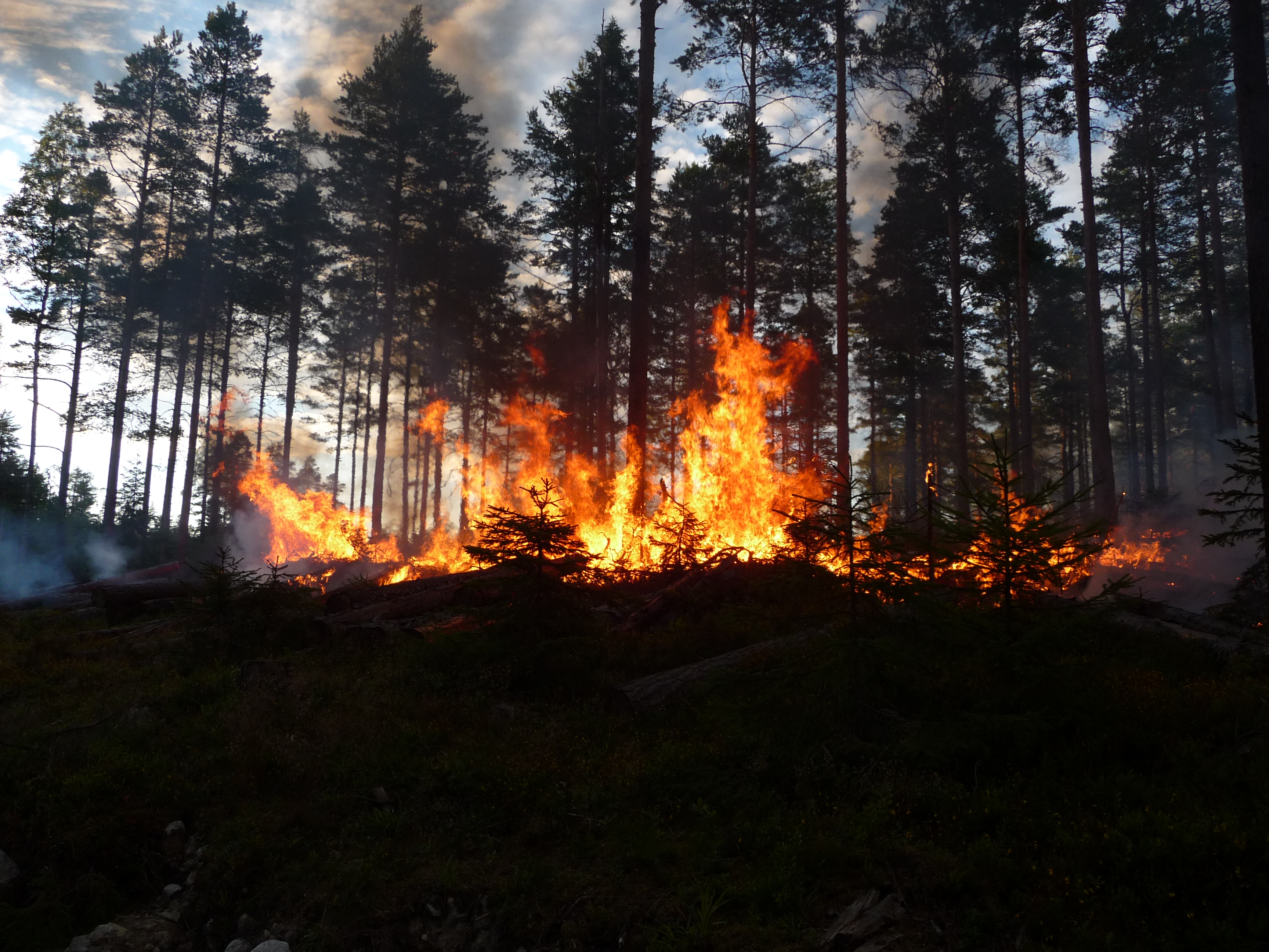 - Beskrivning: Naturvårdsbränningen omfattade 34 hektar tallskog med en medelålder på 110 år, hyggesbränning, brand, rök, eld, mörker, natt, kväll