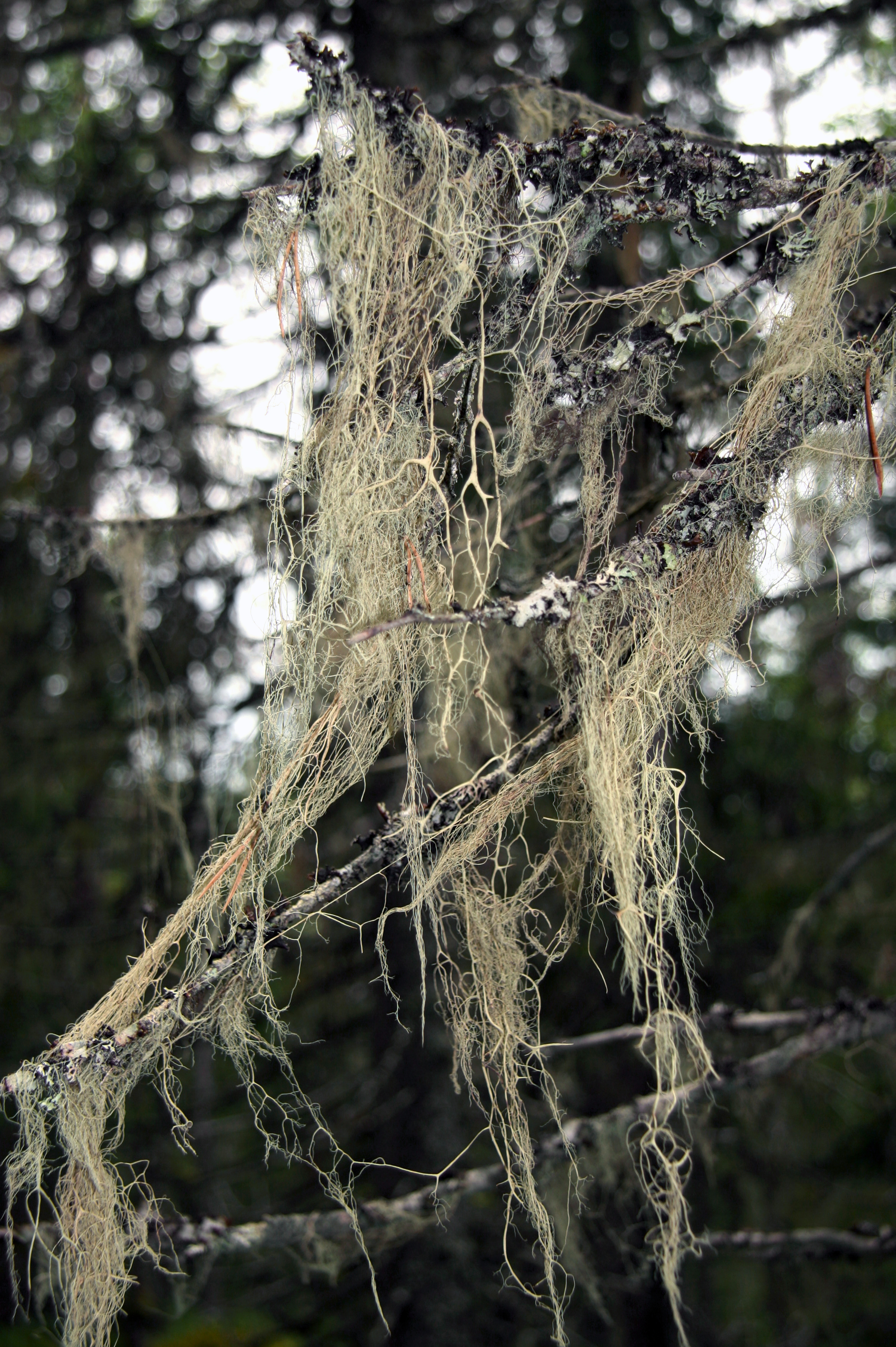 - Beskrivning: Alectoria sarmentosa, Lav hängandes på några trädgrenar