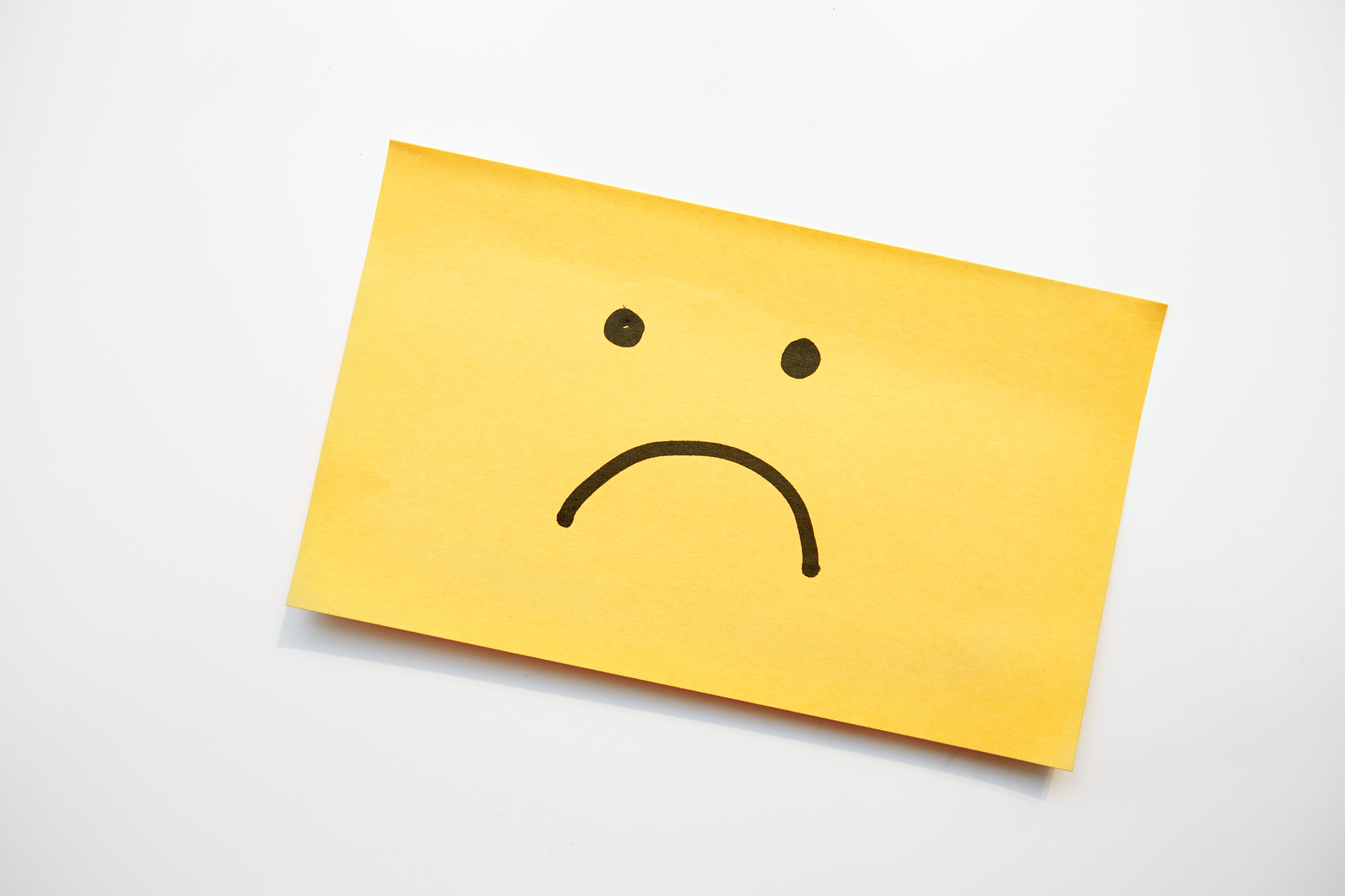- Beskrivning: ledsen, nedstämd, sorgsen, gråter, negativ, tummen ner, butter, grinig, pesimistisk, deppig, nedslagen, trött, less, besviken, Post-it lappar, symbolik, genrebilder, lapp