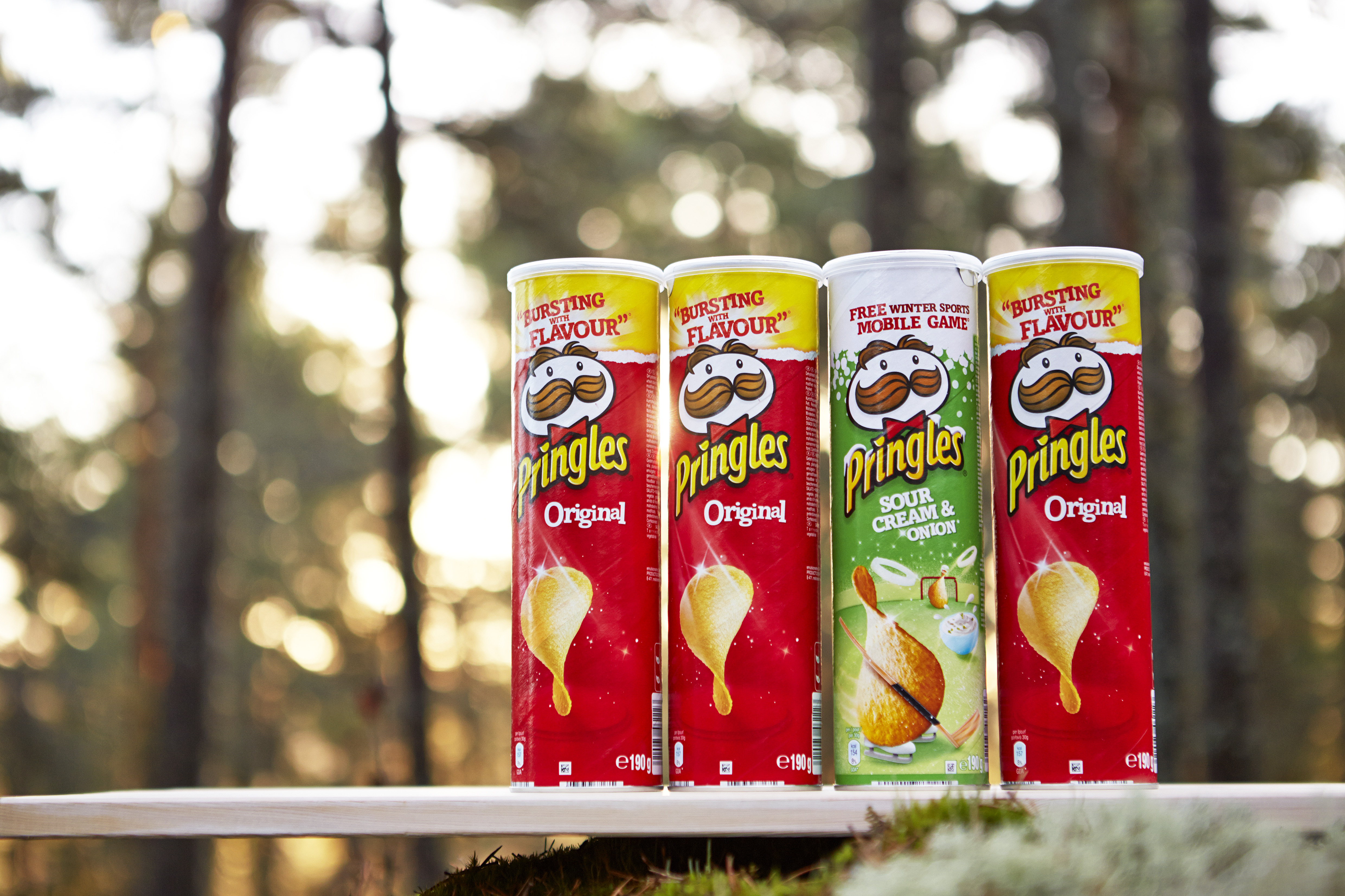 - Beskrivning: Chipsburkar i skogsglänta, Slutanvändning av träråvara, kartong, tubförpackning, specialkraftpapper, chips, burk, snacks, skog, pringlesrör,
