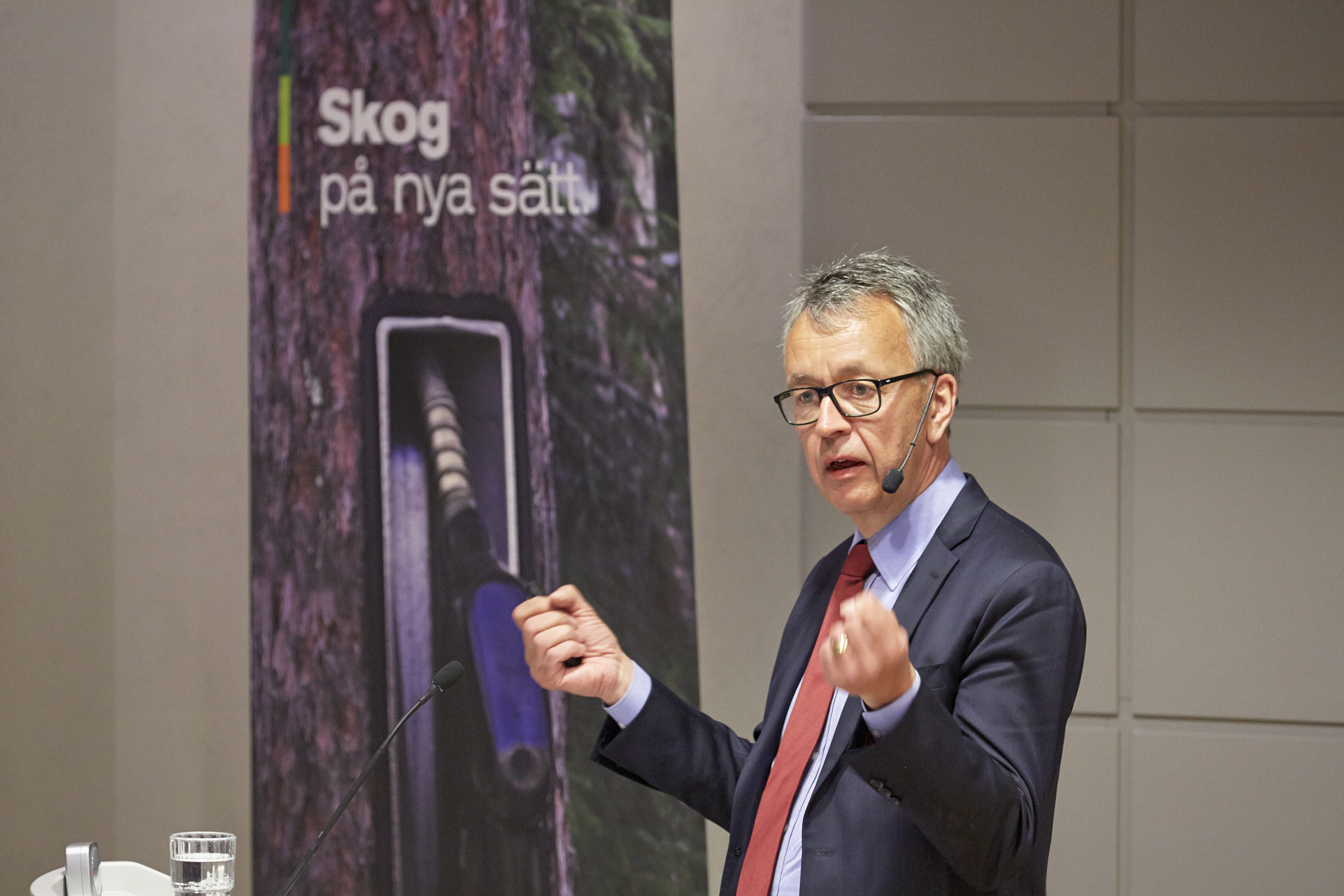 • Beskrivning: Per-Olof Wedin, vd, skog på nya sätt, Sveaskogs årsstämma 2014 i Bonnierhuset i Stockholm.