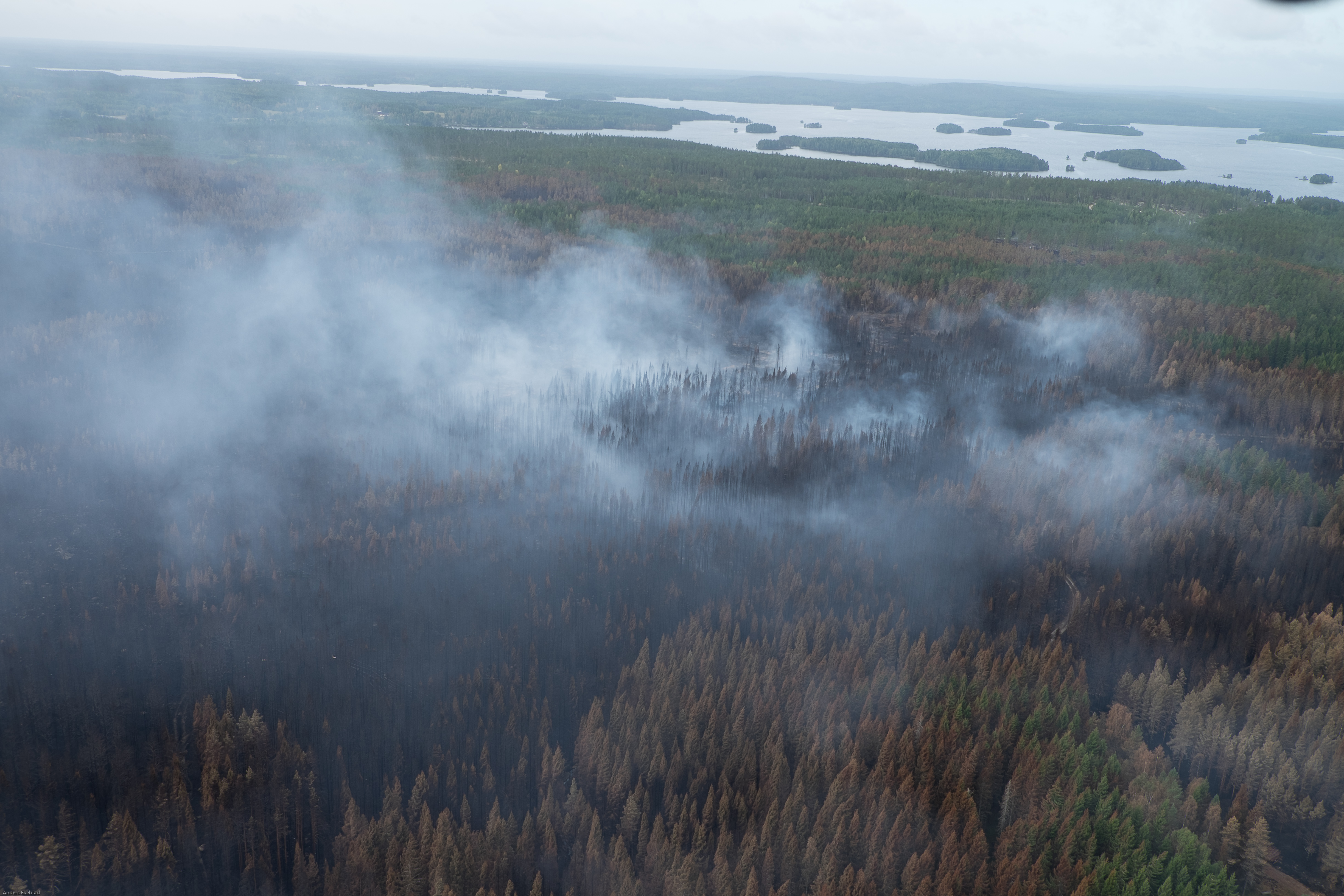 • Beskrivning: Skogsbrand, skog, Västmanland, brandskadad, rök, nedbrunnen skog, flygfoto, ovanifrån