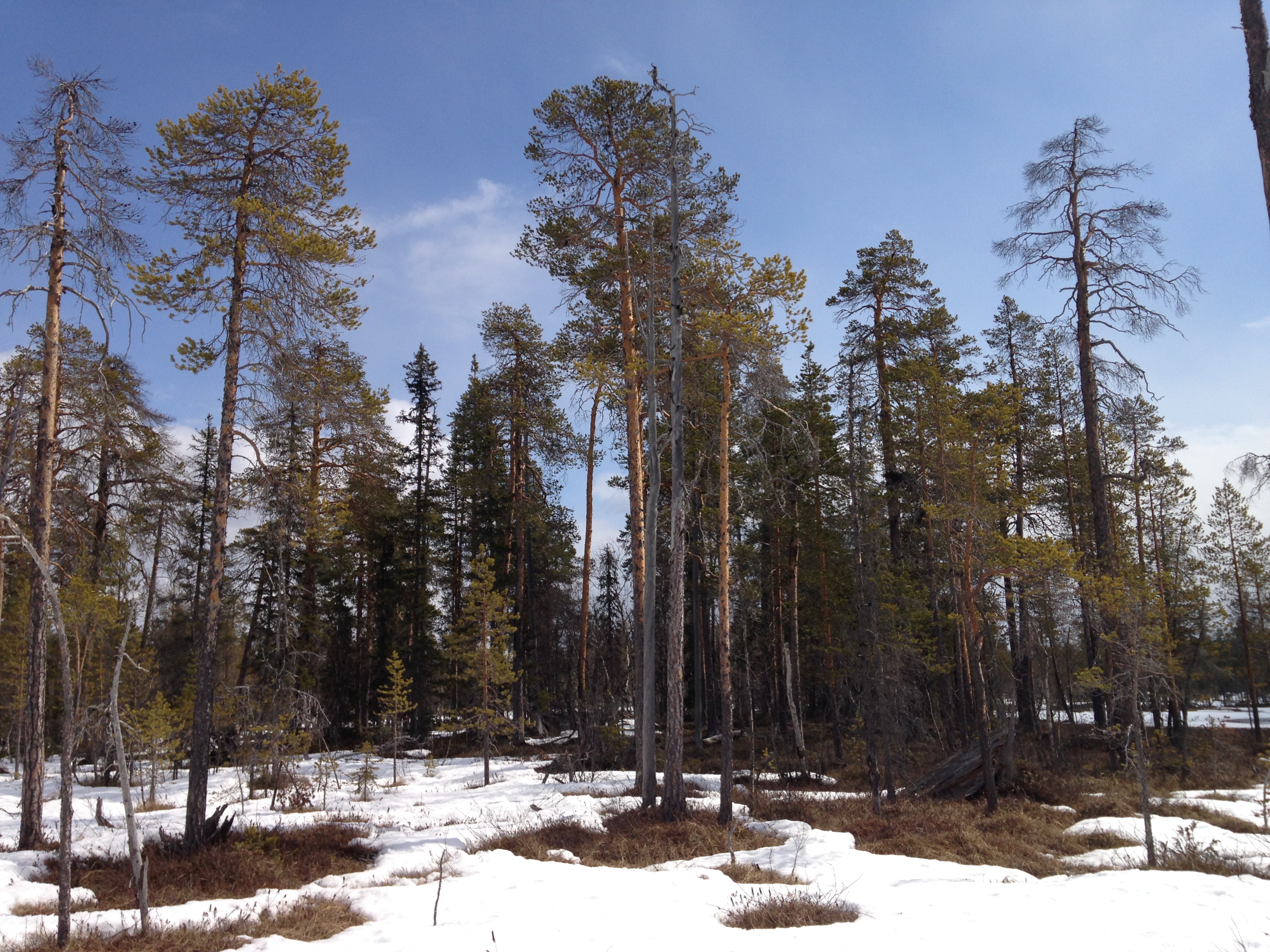 - Beskrivning: Ekopark Piteälven, tallnaturskog, tall, snö