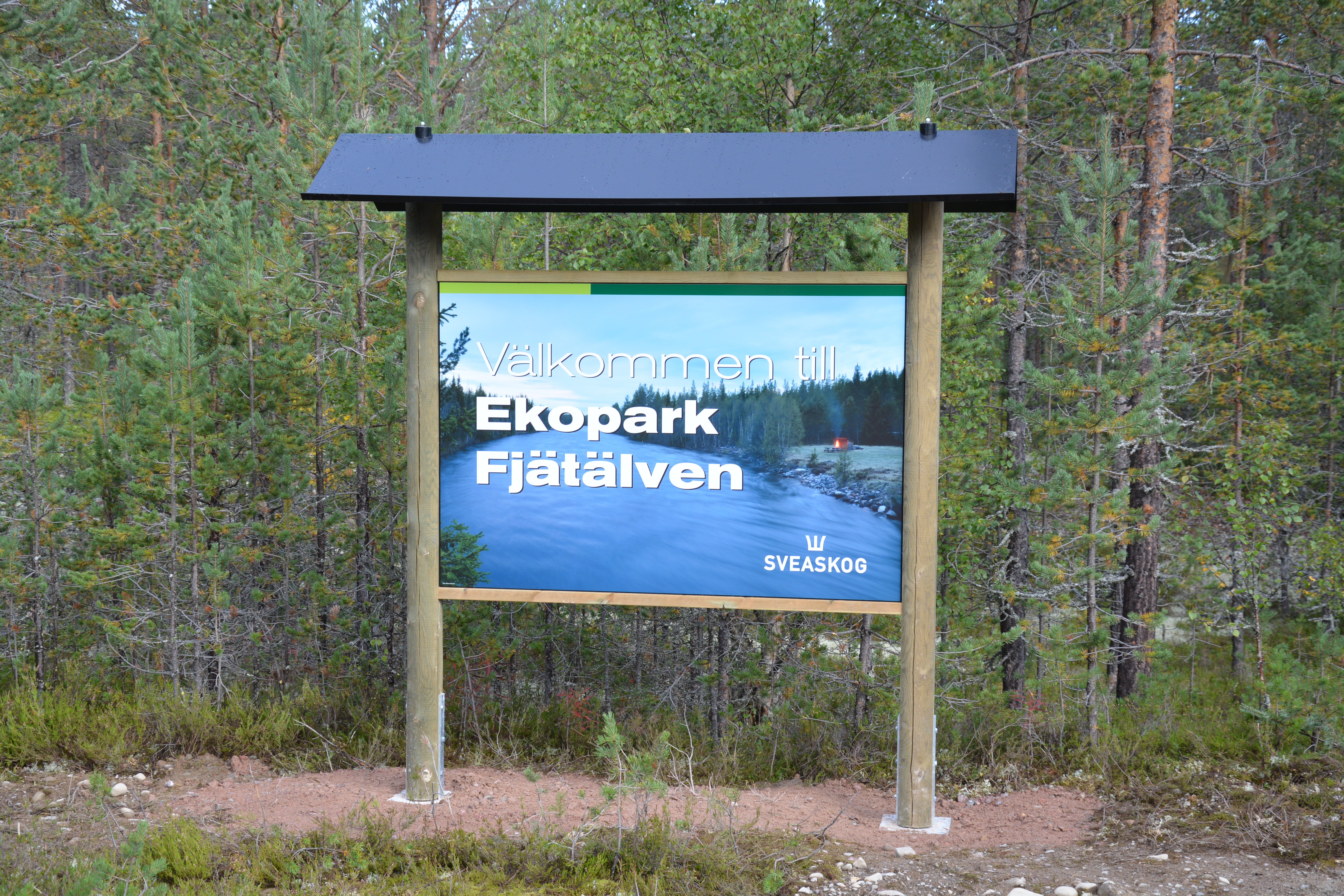 • Beskrivning: Invigning av Ekopark Fjätälven, skylt, skyltning, välkommen
