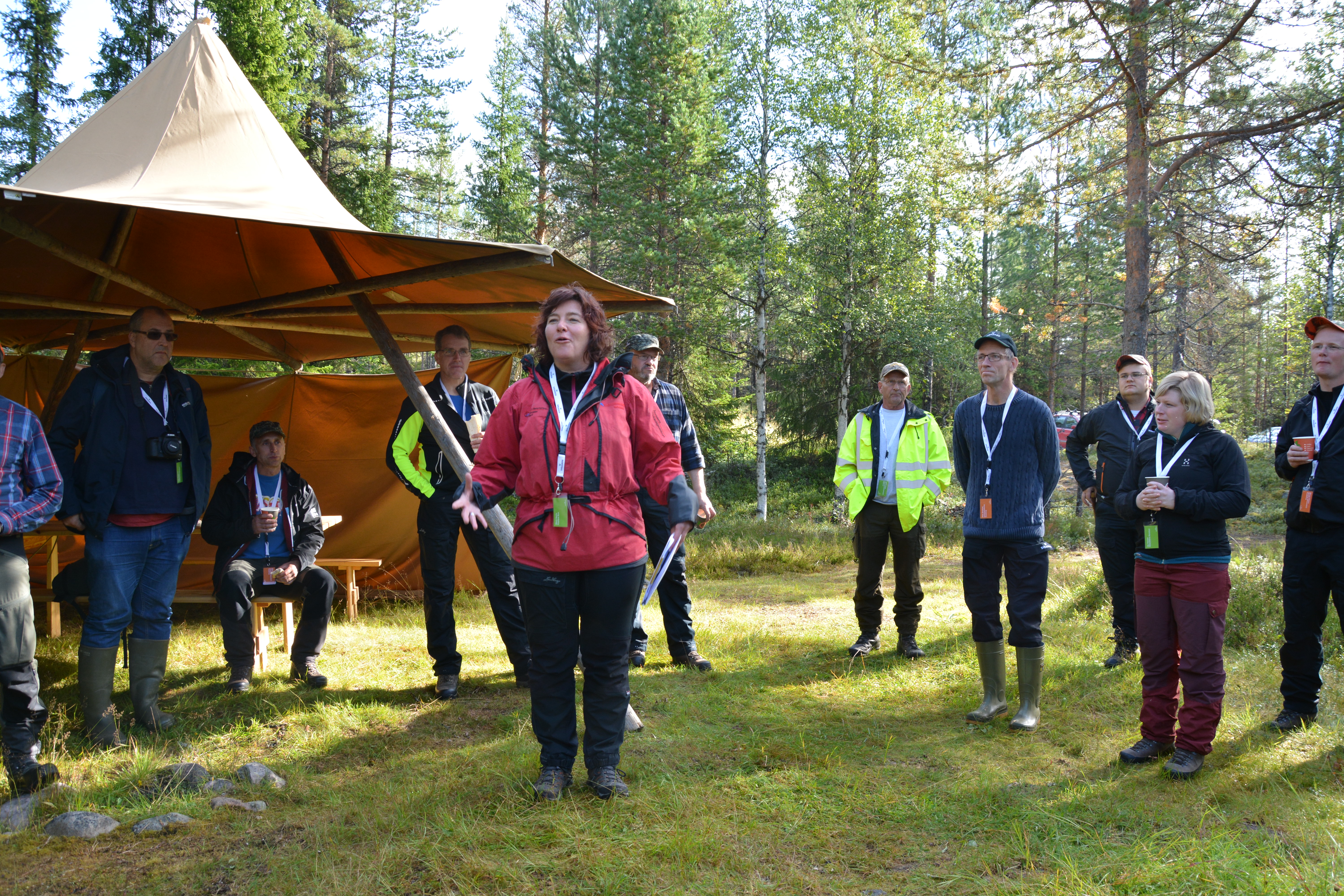 - Beskrivning: Invigning av Ekopark Fjätälven, Vid registreringen bjöds gästerna på kaffe och smörgås, framför kåta