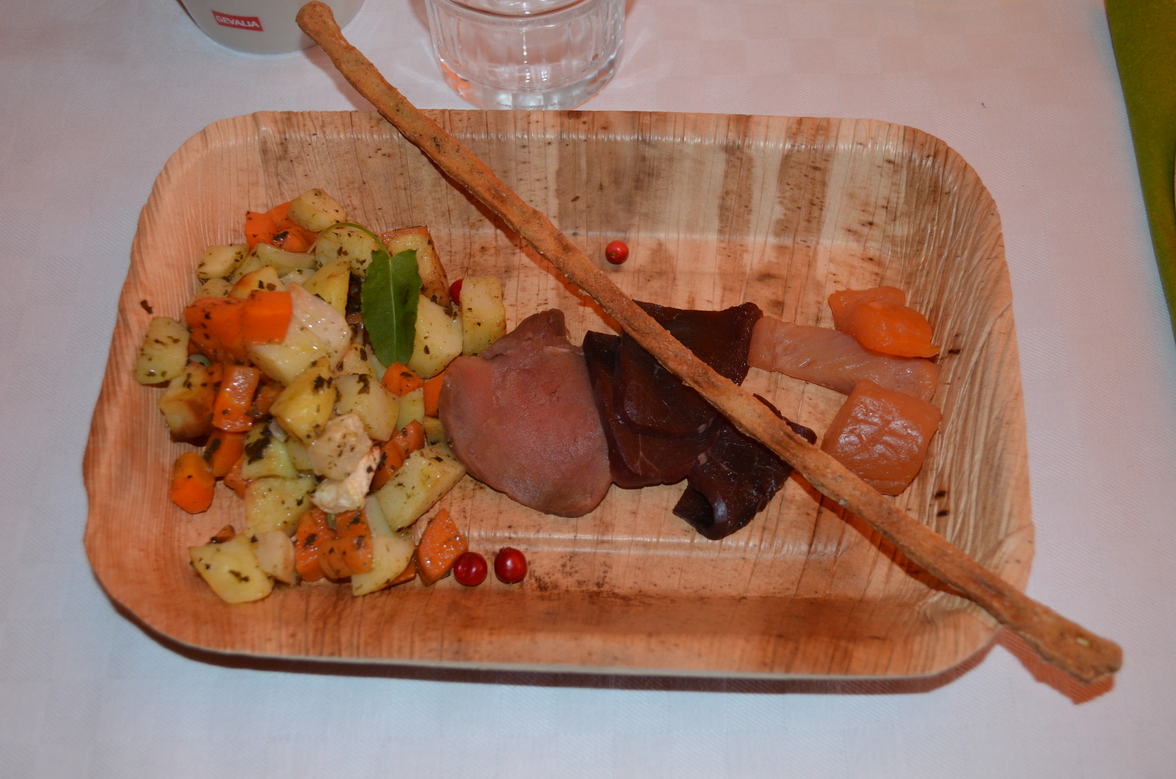- Beskrivning: Invigning av Ekopark Piteälven och Varjisån, på menyn stod bland annat, björkkryddade sticks med tall- och granskottsdipp, kallrökt öring, gravat reninnanlår och skvattramkryddad älgstek.