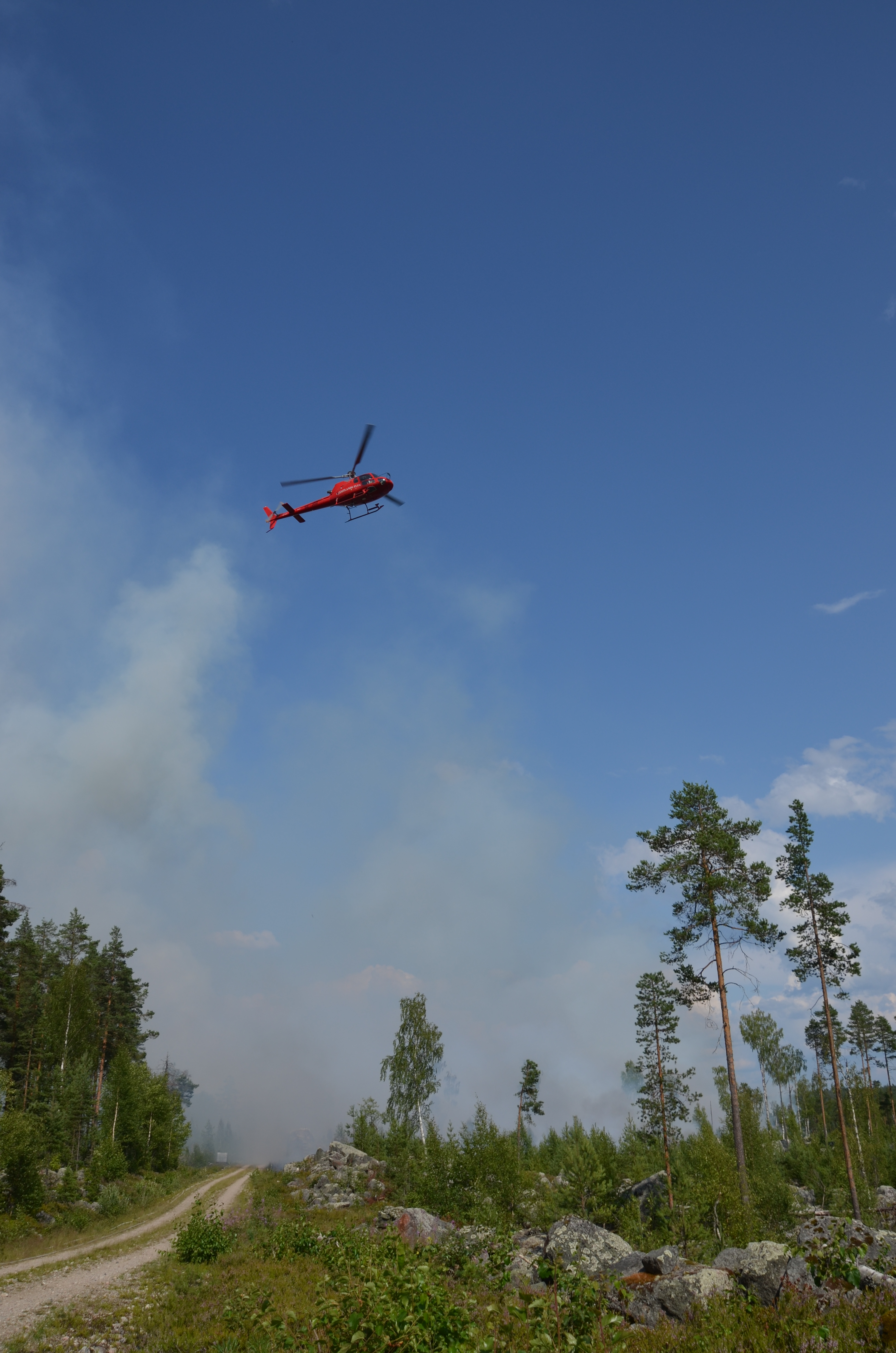 - Beskrivning: Helikopter flyger över Ekopark Ejheden, Kontrollerad naturvårdsbränning, bränning i Ekopark Ejheden i Rättviks kommun, avbruten, rök