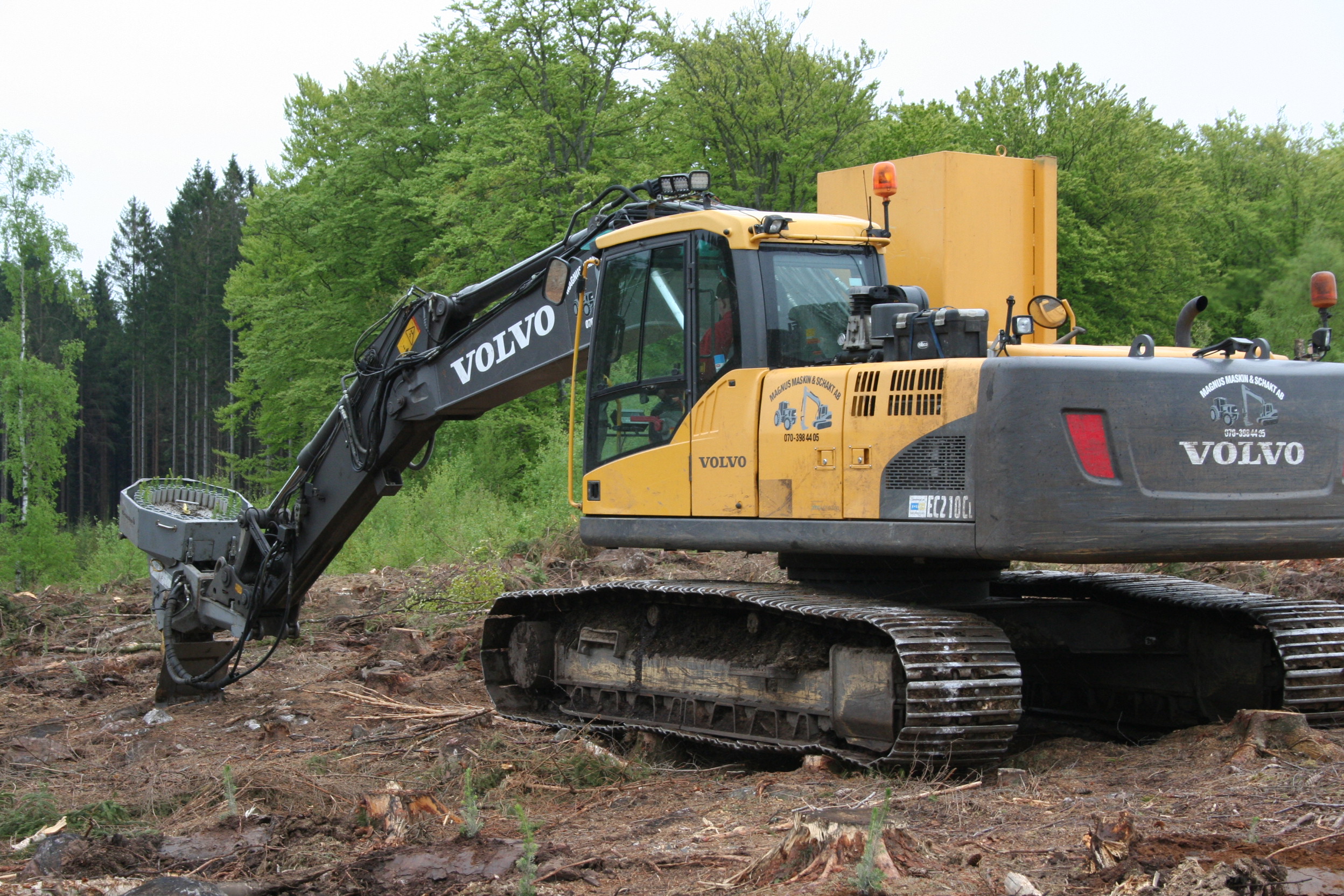 - Beskrivning: Plantmaskin, planteringsmaskin, Under våren planterades en del av Sveaskogs mark i Kolleberga med maskin, Maskinen drar ihop jord till en planteringshög. SSP