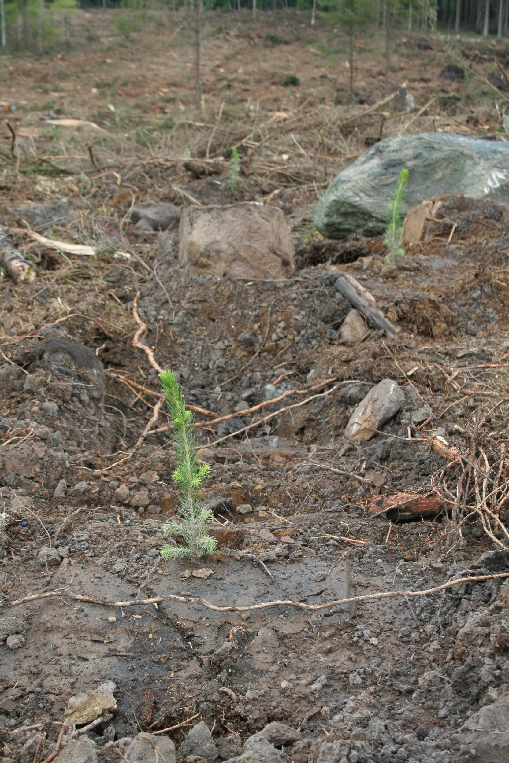 - Beskrivning: Plantmaskin, planteringsmaskin, Under våren planterades en del av Sveaskogs mark i Kolleberga med maskin, Plantan planterad i sin hög. SSP