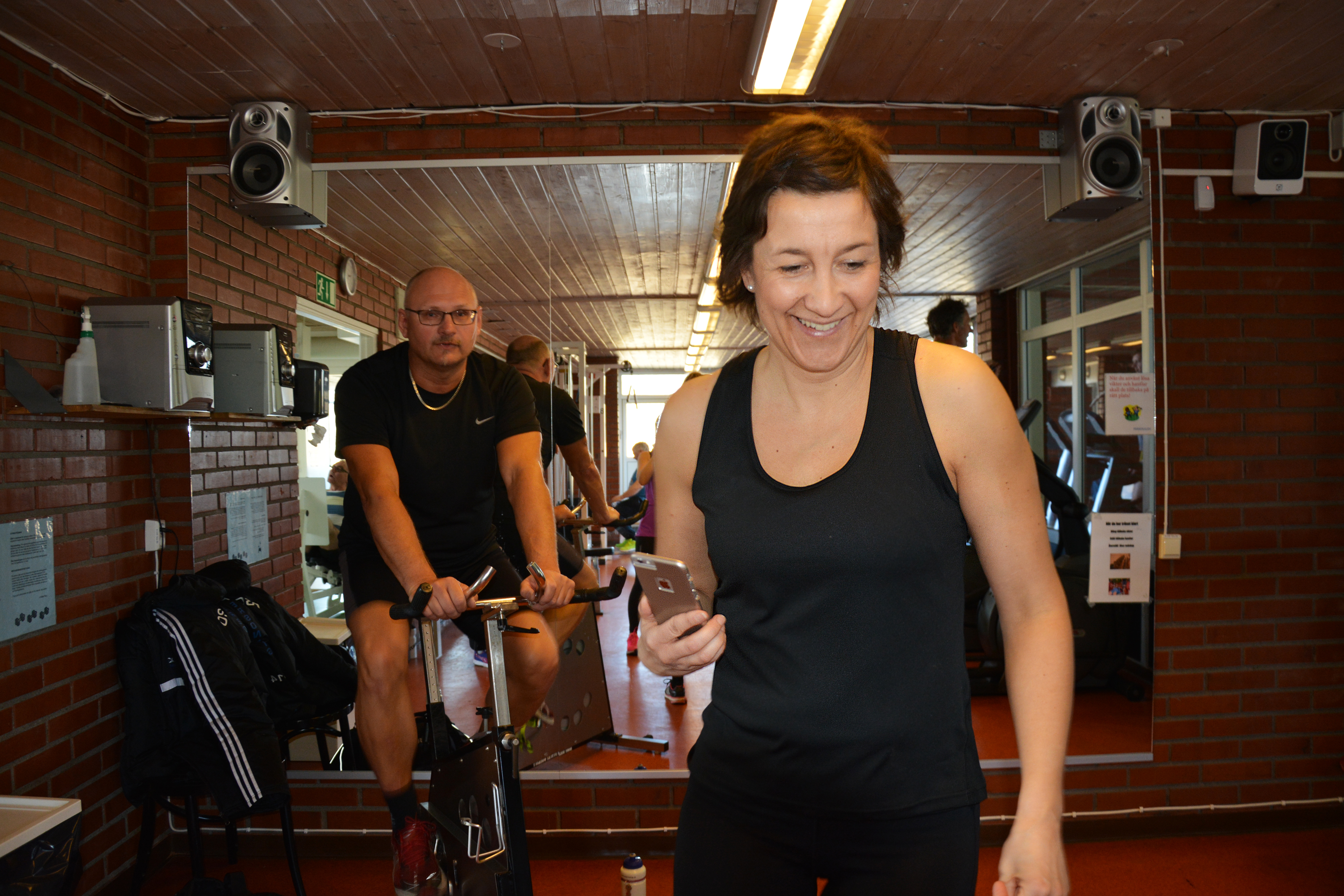 - Beskrivning: Gunnar Brandt och Helene Bergström, Träning, aktivitet, gym, friskvård, friskvårdsdag, spinning