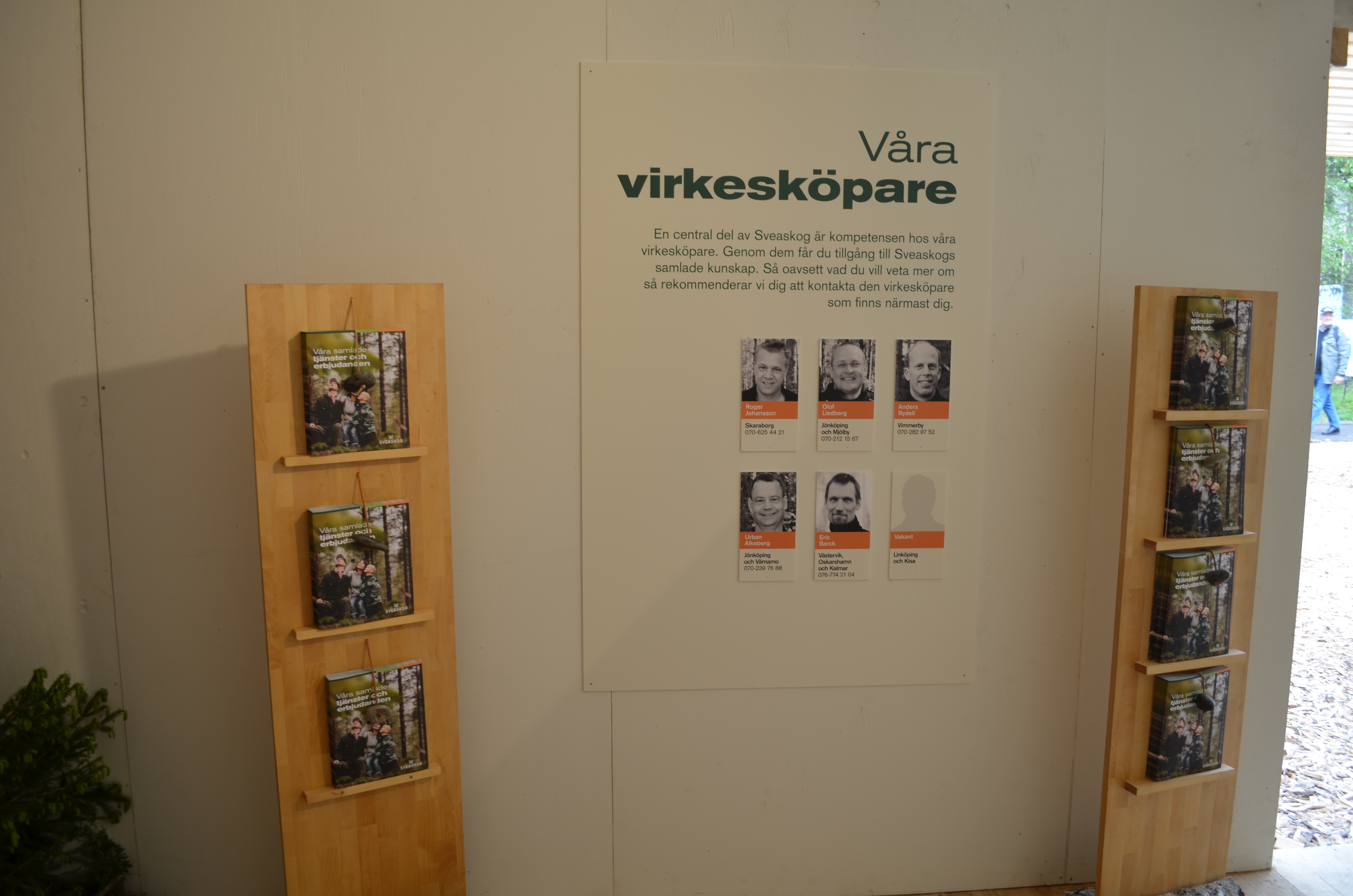 - Beskrivning: Del av Sveaskog monter, annonser, marknadsföring, Sveaskog på SkogsElmia, skogsmässa, jönköping,