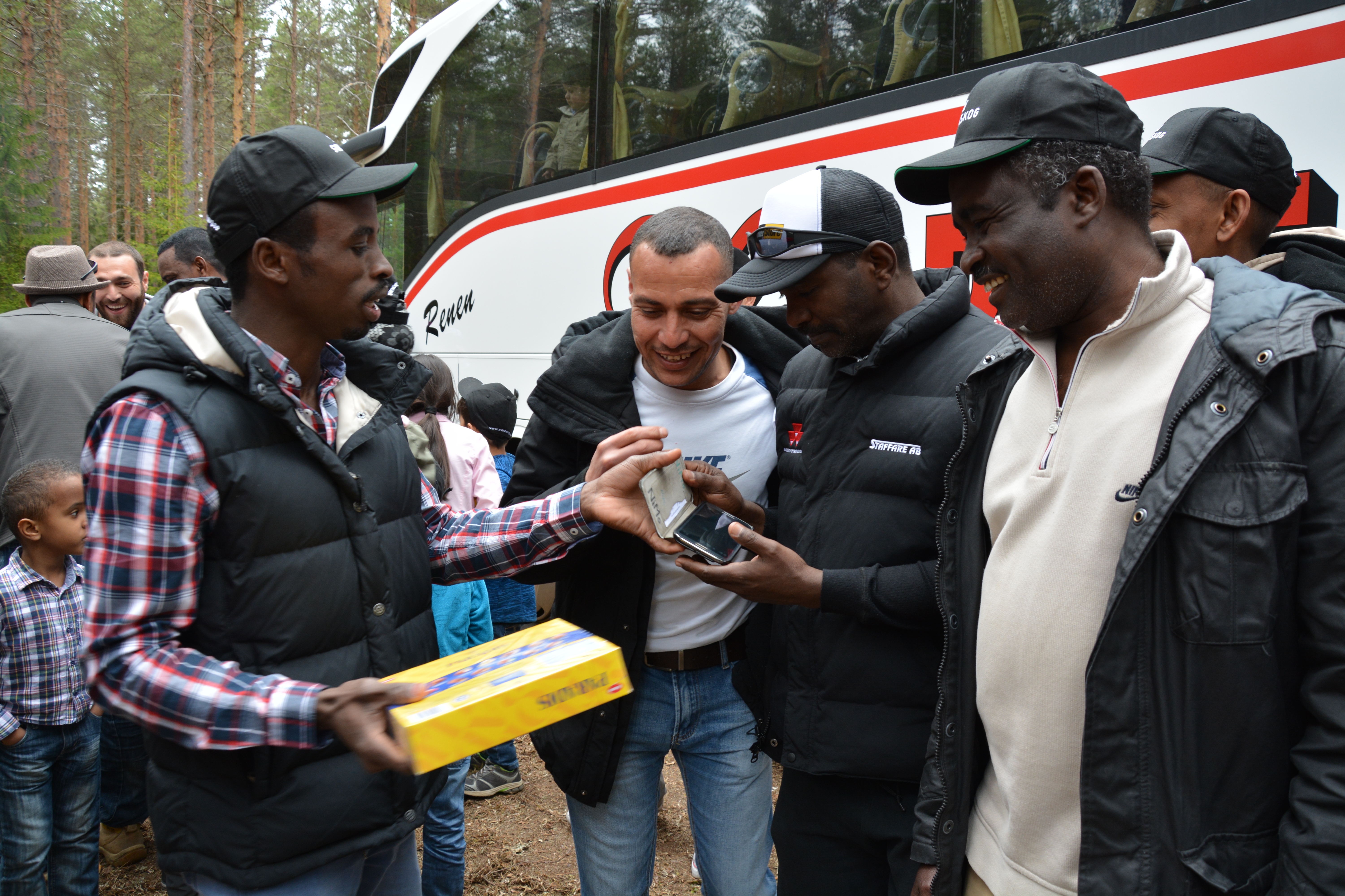 - Beskrivning: Några av deltagarna vid bussen, Skogsdag för nysvenskar i Södra Norrland i samarbete med Linnéuniversitetet och VIF, Vänskap och Integrationsföreningen
