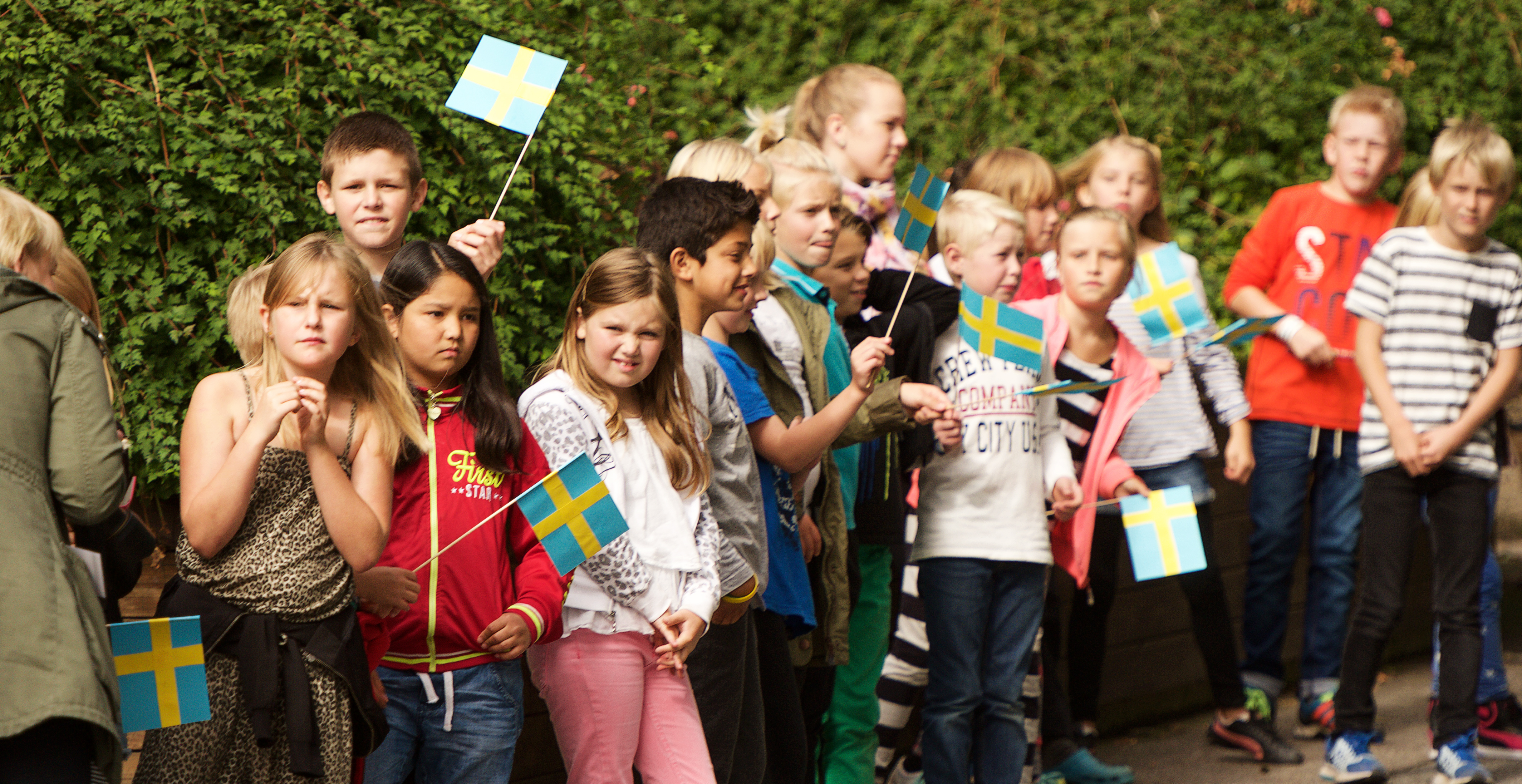 • Beskrivning: barn, skolklass, väntar på att kungen ska anlända, Sveaskogs seminarium "Laxfiskets potential för tillväxt i Sverige"