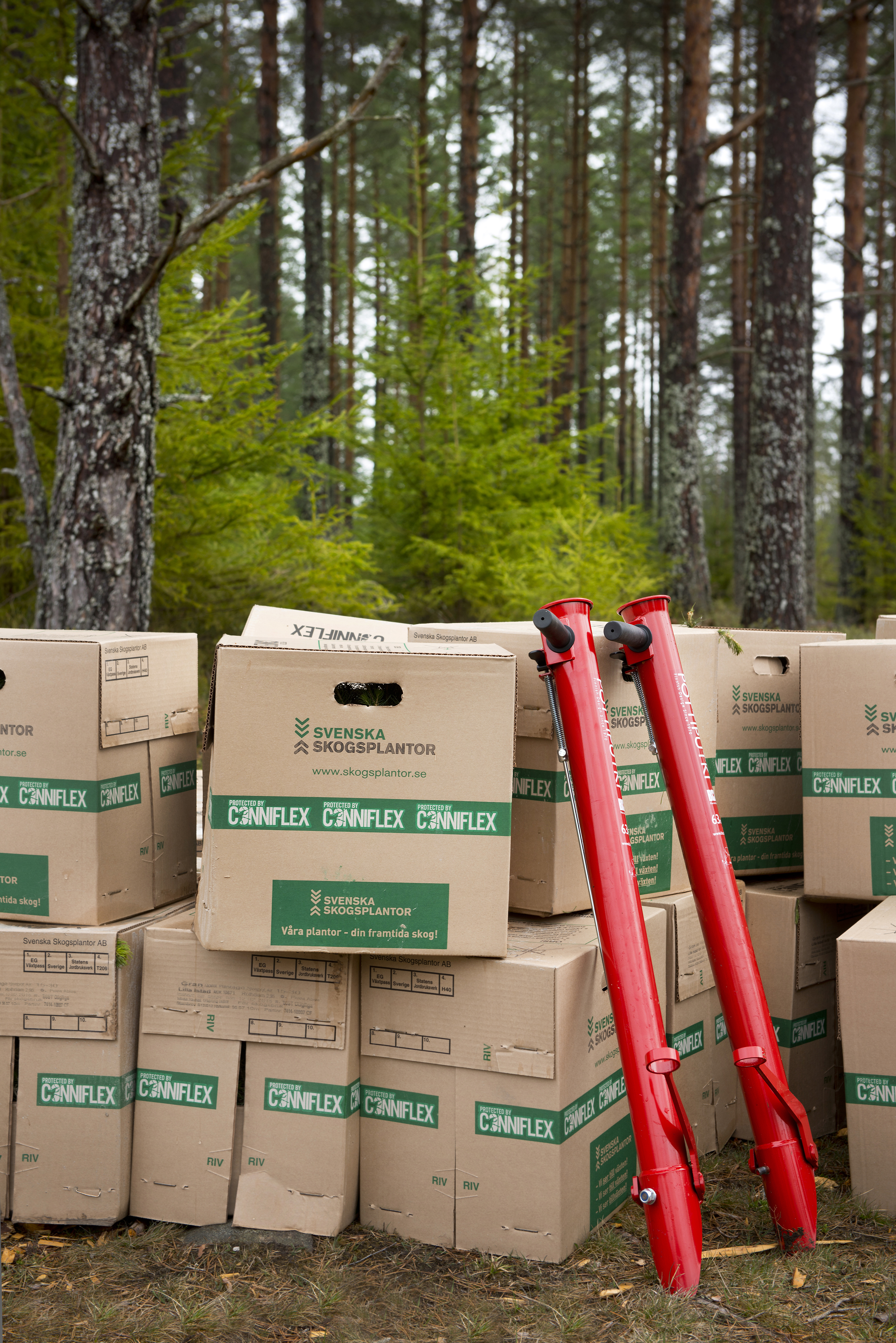 - Beskrivning: Kartonger med plantor och rör för plantering