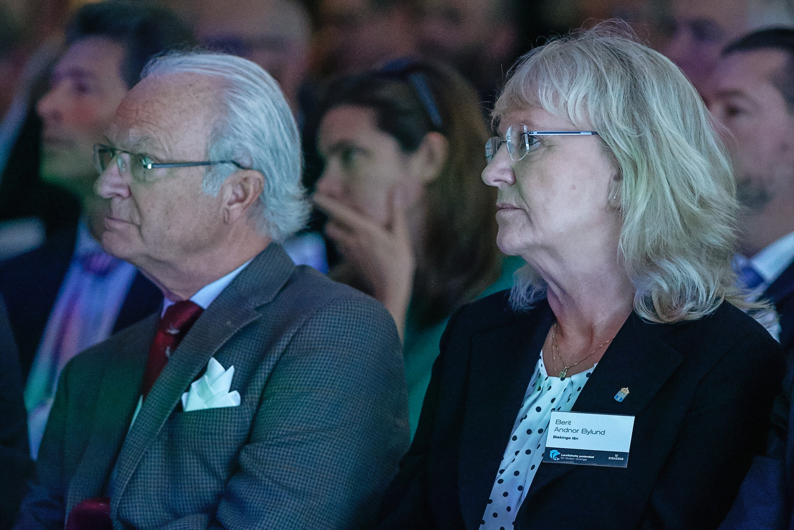 - Beskrivning: Kung Carl XVI Gustaf, Kungen och Berit Andnor Bylund, landshövding Blekinge län, Sveaskogs seminarium "Laxfiskets potential för tillväxt i Sverige"