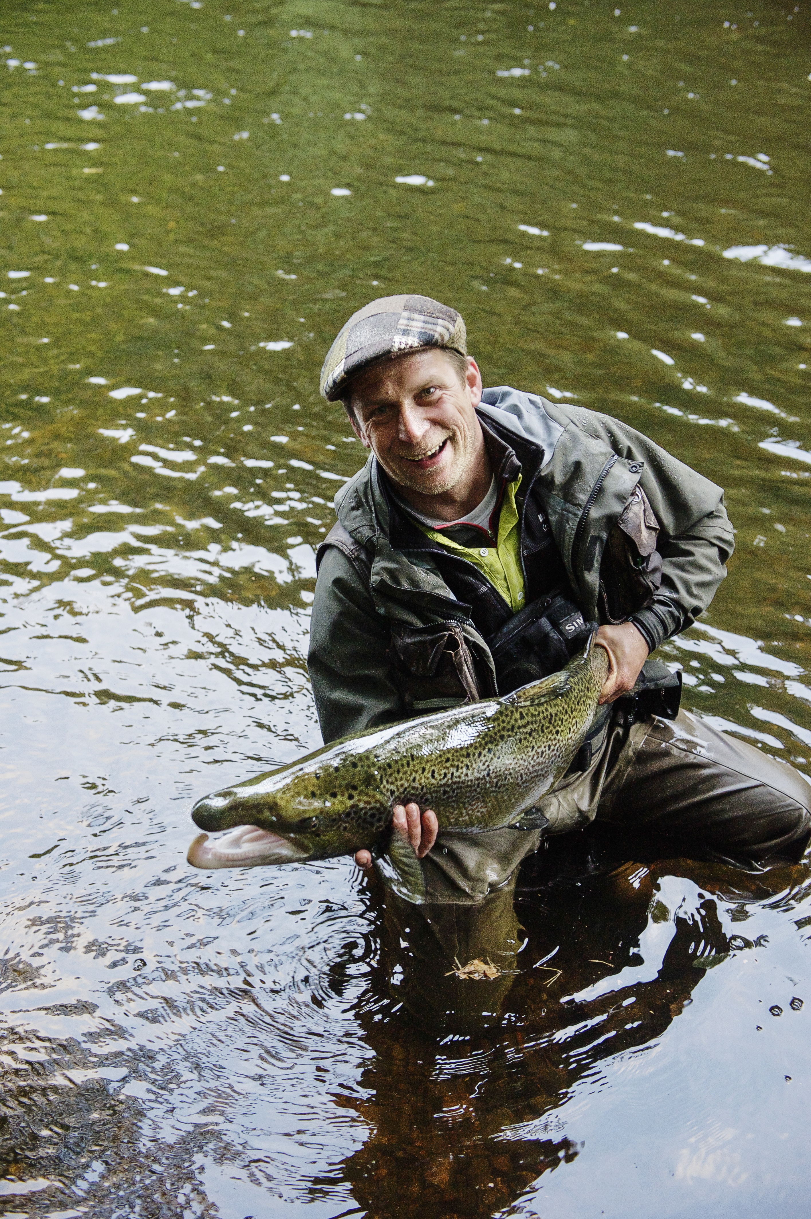 - Beskrivning: Fiskare i Mörrum, flugfiske, fiske efter öring, catch and release