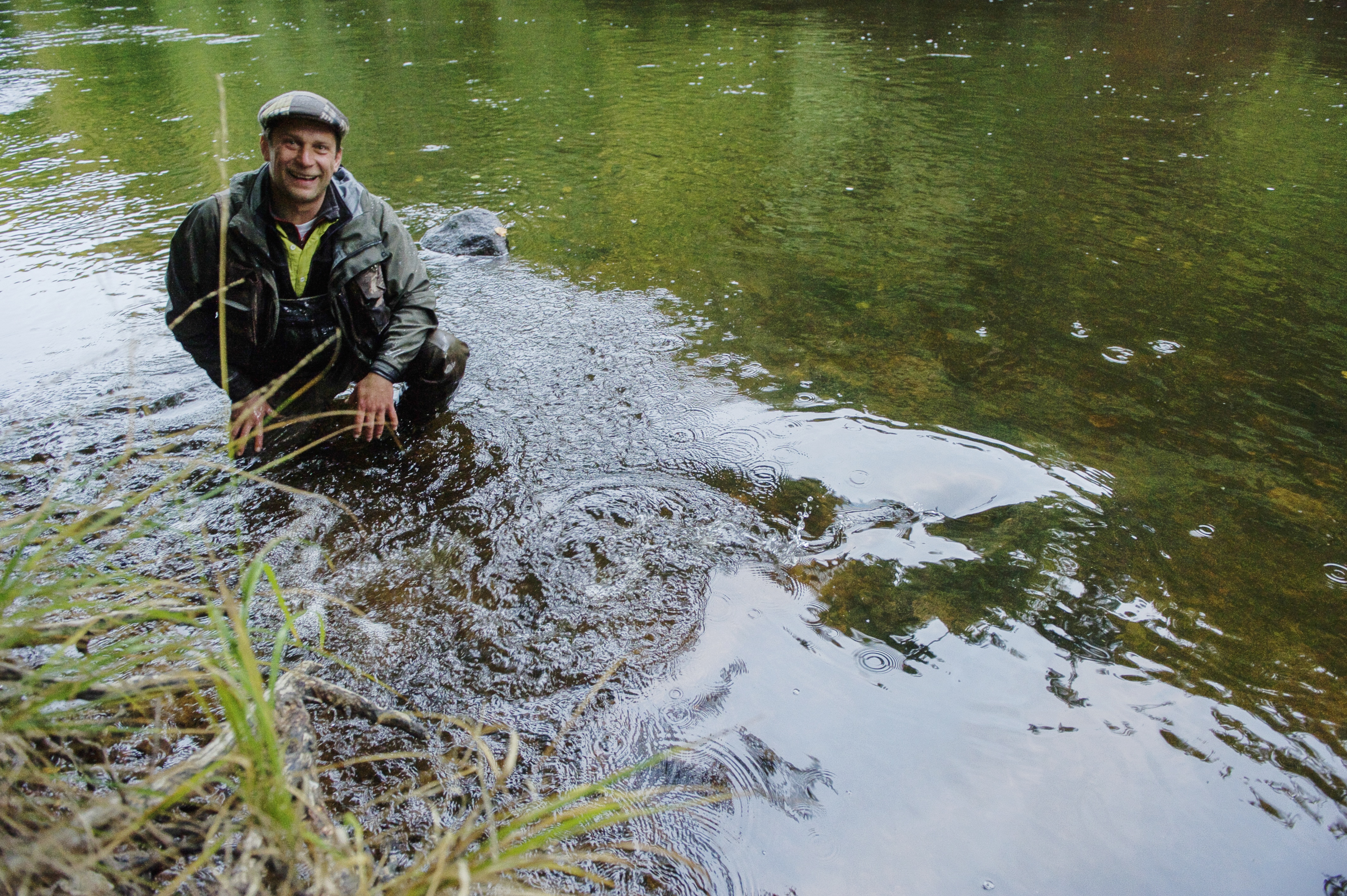 • Beskrivning: Fiskare i Mörrum, flugfiske, fiske efter öring, catch and release