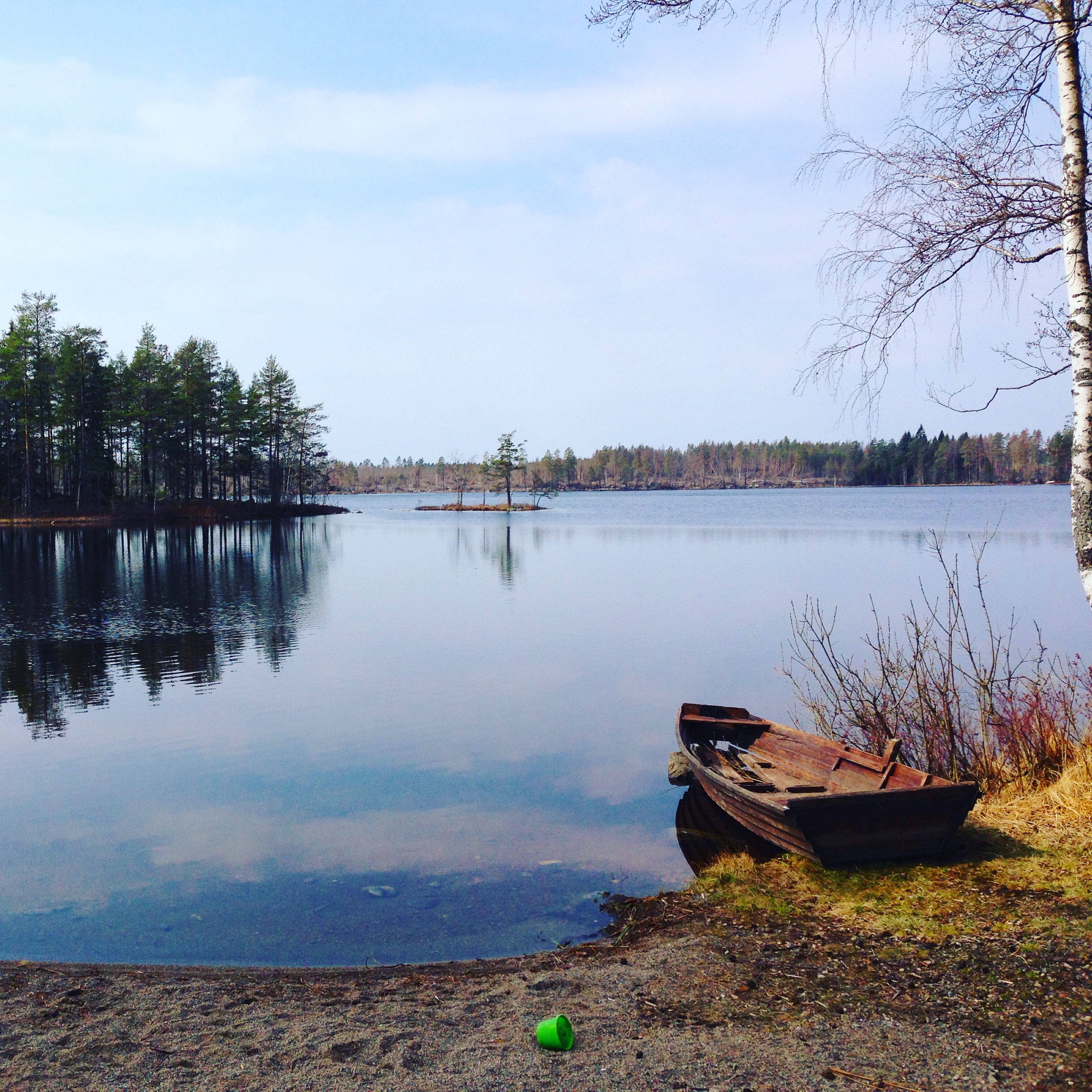 - Titel: Träbåt framför spegelblankt vatten