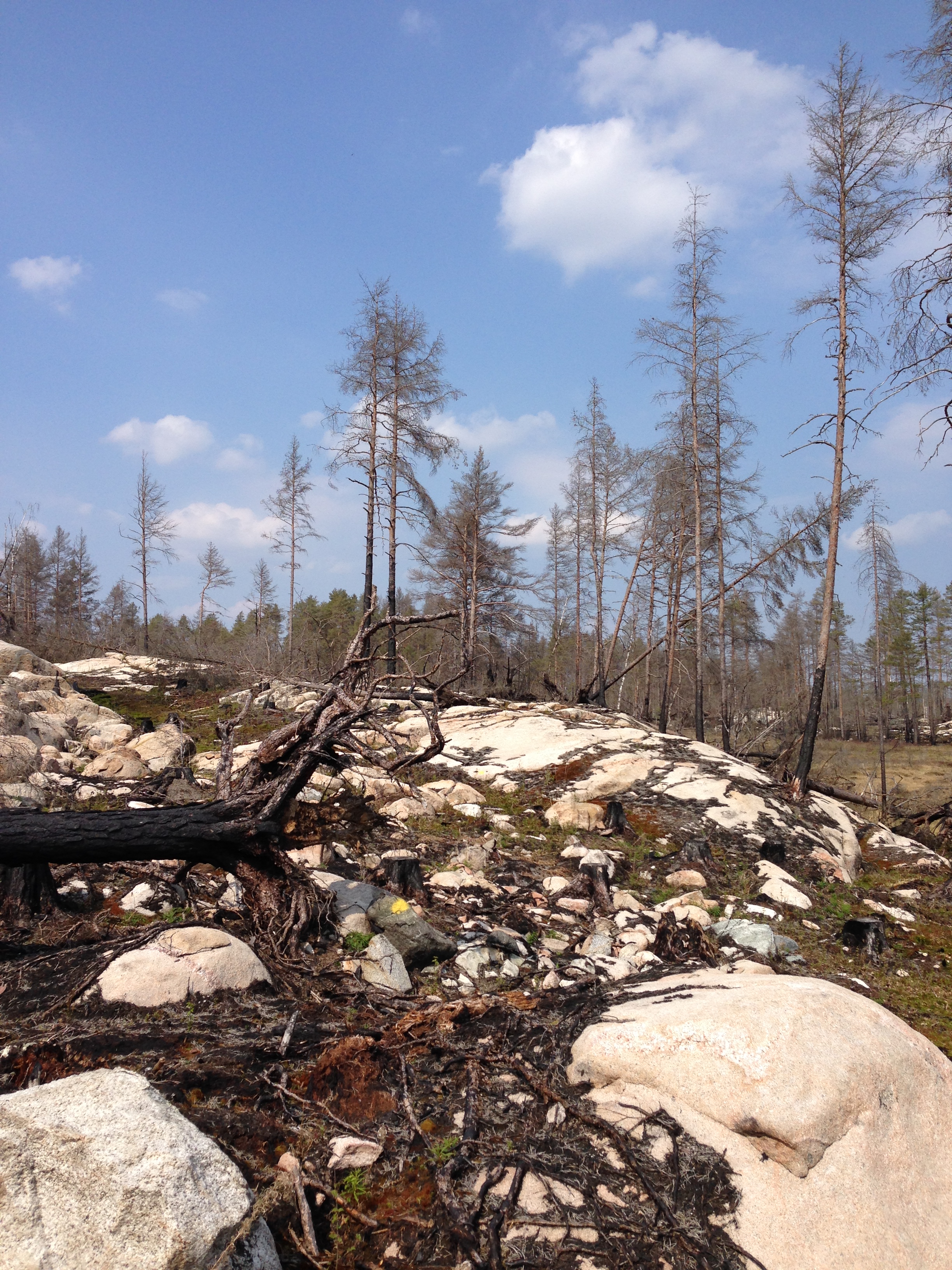 • Beskrivning: Ekopark Öjesjöbrännan, efter bränning, skogsbrand, kol