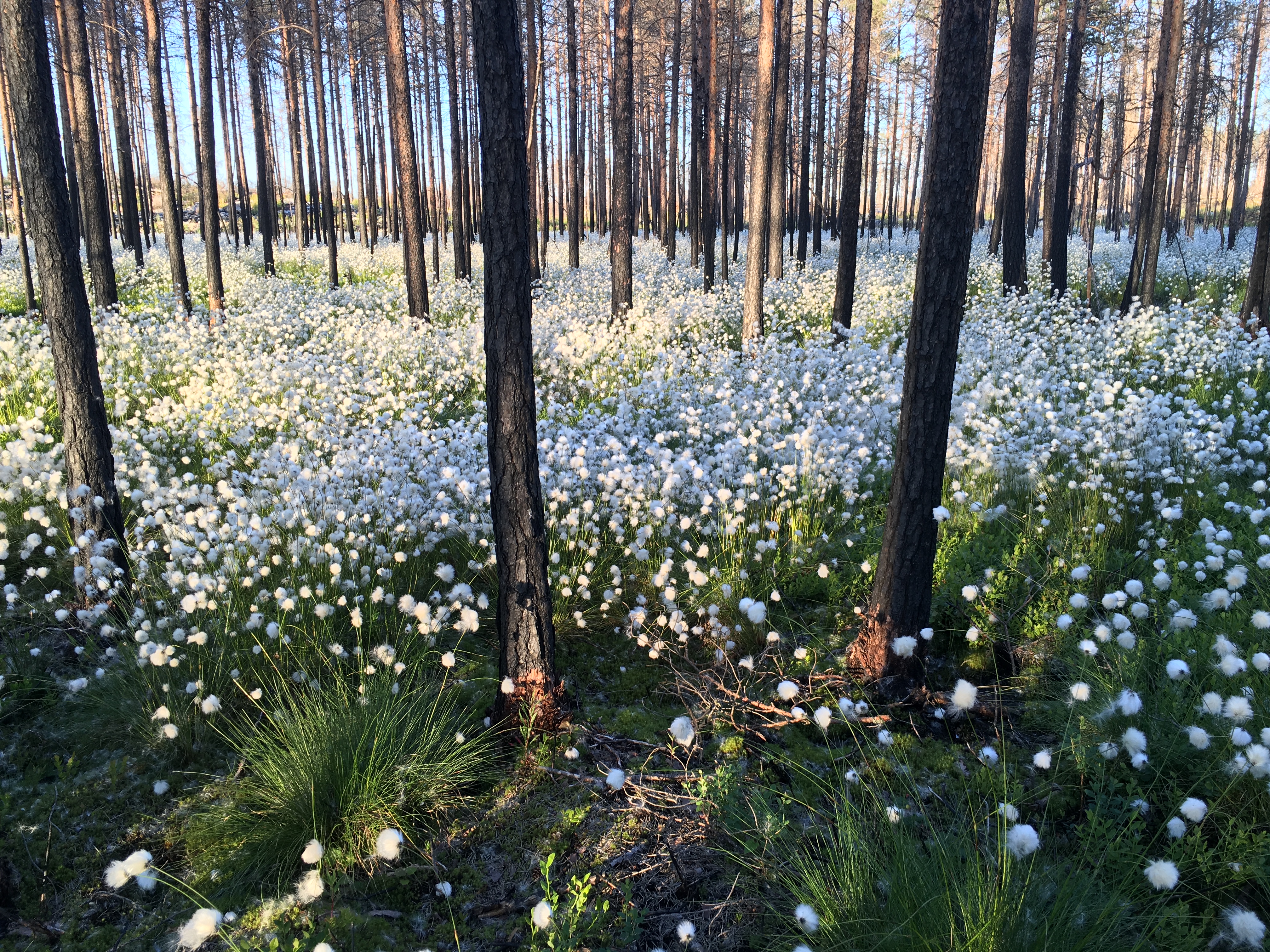 - Beskrivning: Tuvull, hadd, myrdun, toböder, halvgräs, äng, Ekopark Öjesjöbrännan, liv efter brand, växtlighet, liv, pånyttfödelse