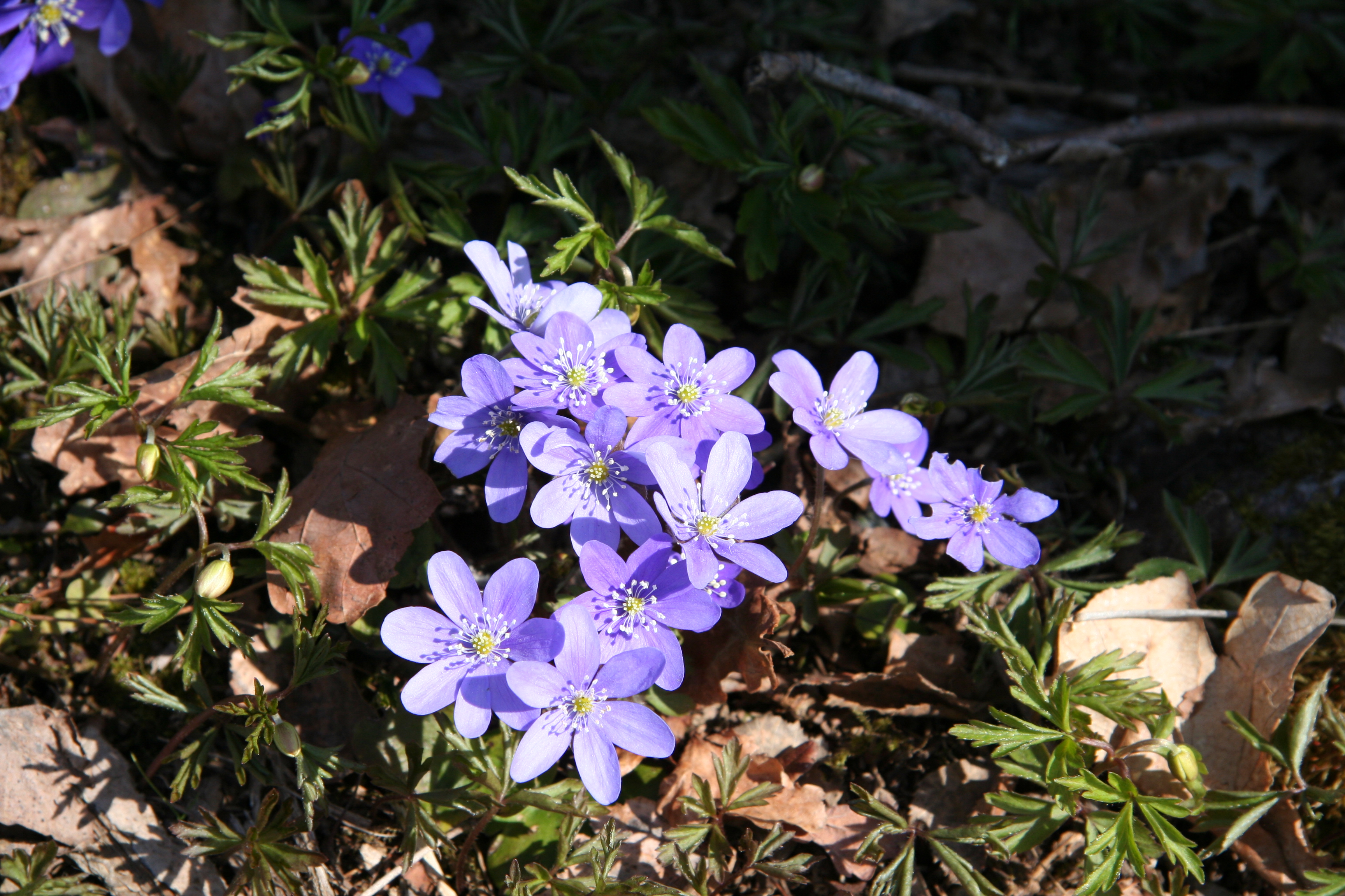 - Beskrivning: Blåsippa, vårblomma, Ekopark Omberg