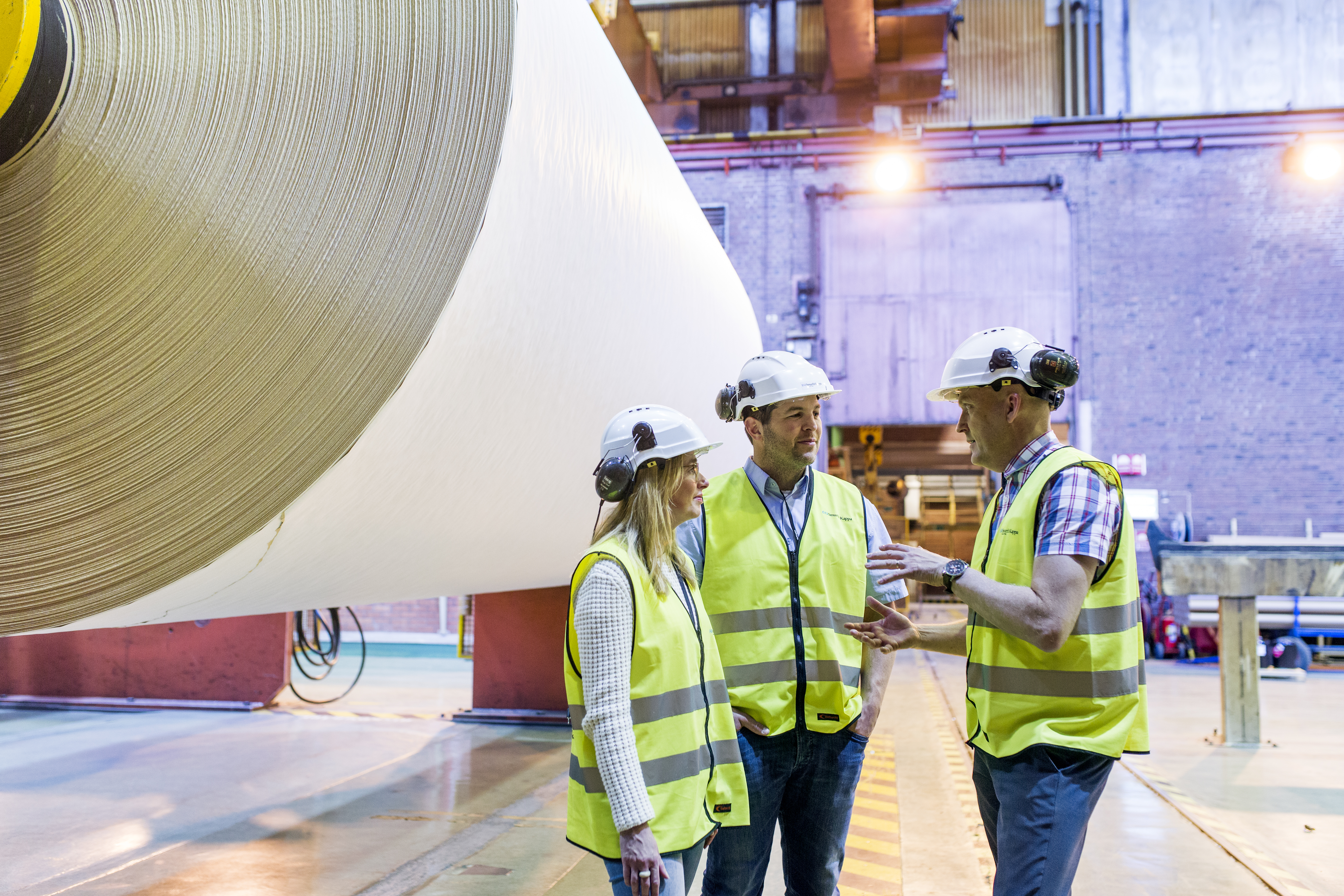 - Beskrivning: Ann Eklund, Jörgen Westman och Stefan Merum, sågverk, pappersbruk, kund, fabrik, produktion, bruk, kundbesök, hela kedjan, från träråvara till slutprodukt, massaindustri, massabruk, pappersindustri, pappersbruk, papperstillverkning