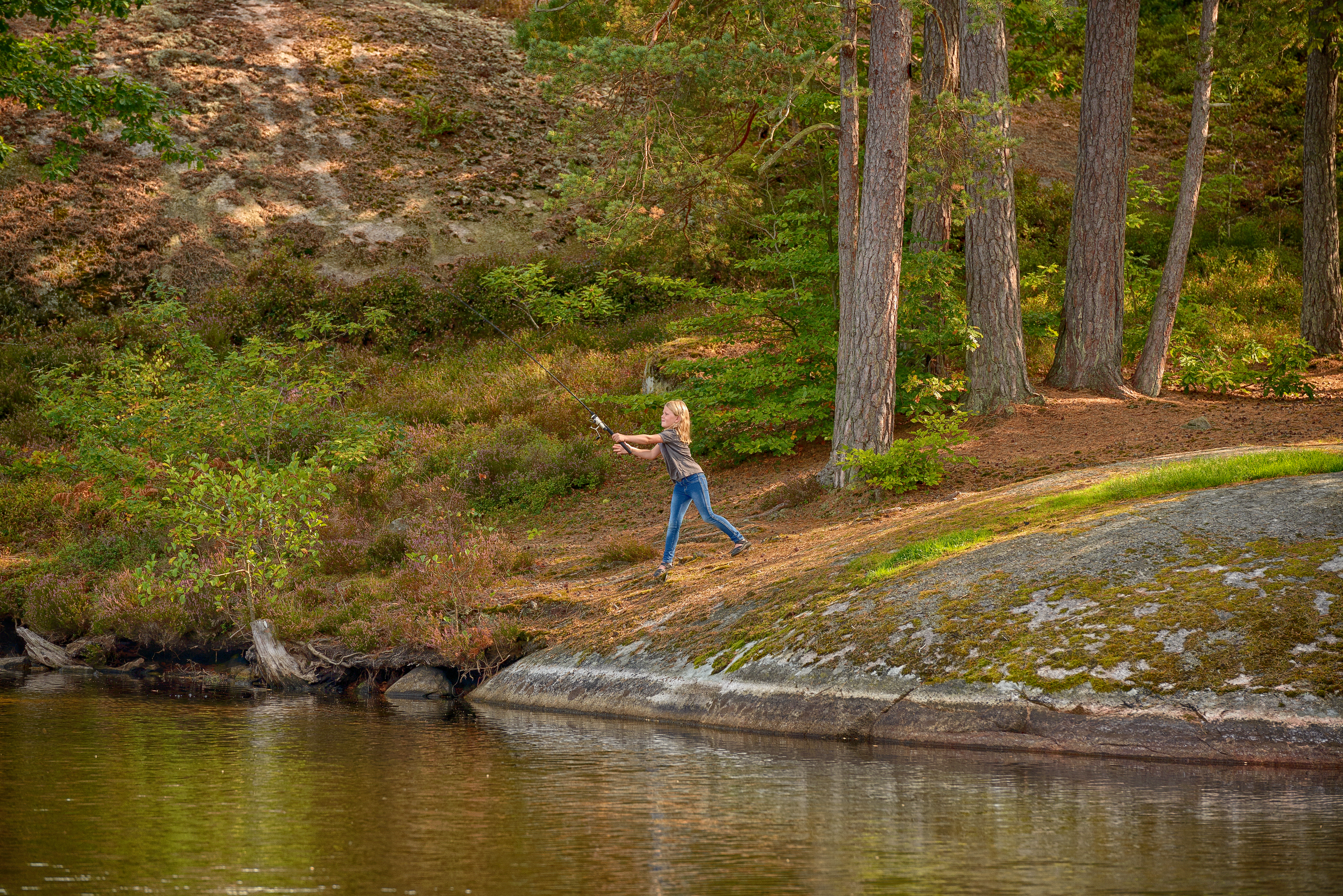 - Beskrivning: Fiske, fiskare, mete vid kanten av mörrumsån, barn som metar