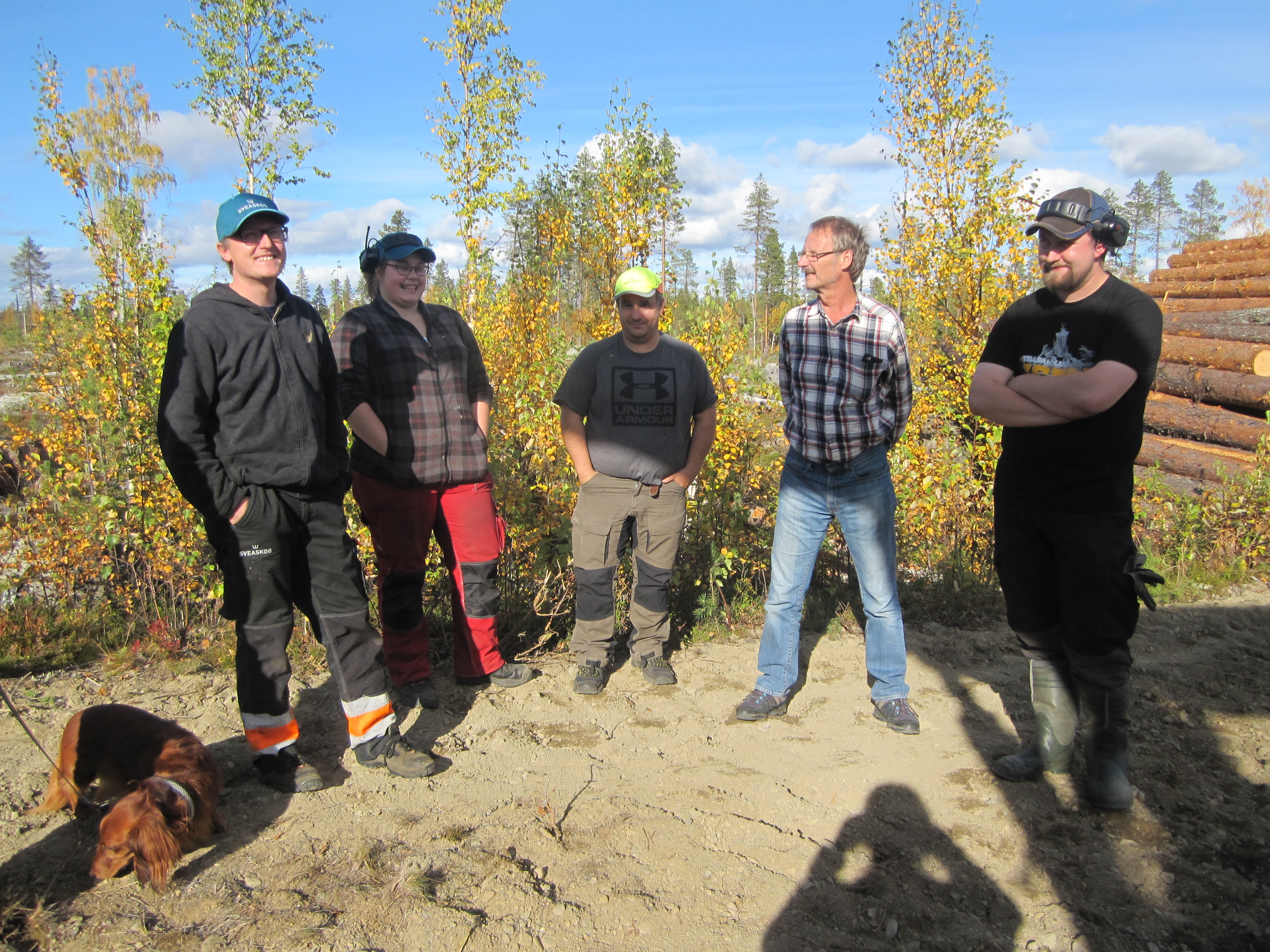 - Beskrivning: Robert Kjellgren, Marie Risberg, Mattias Torger, Sture Persson och Kristoffer Albertsson, Skotare och skördare i samma maskin, skördar och skotar i samma moment, drivare
