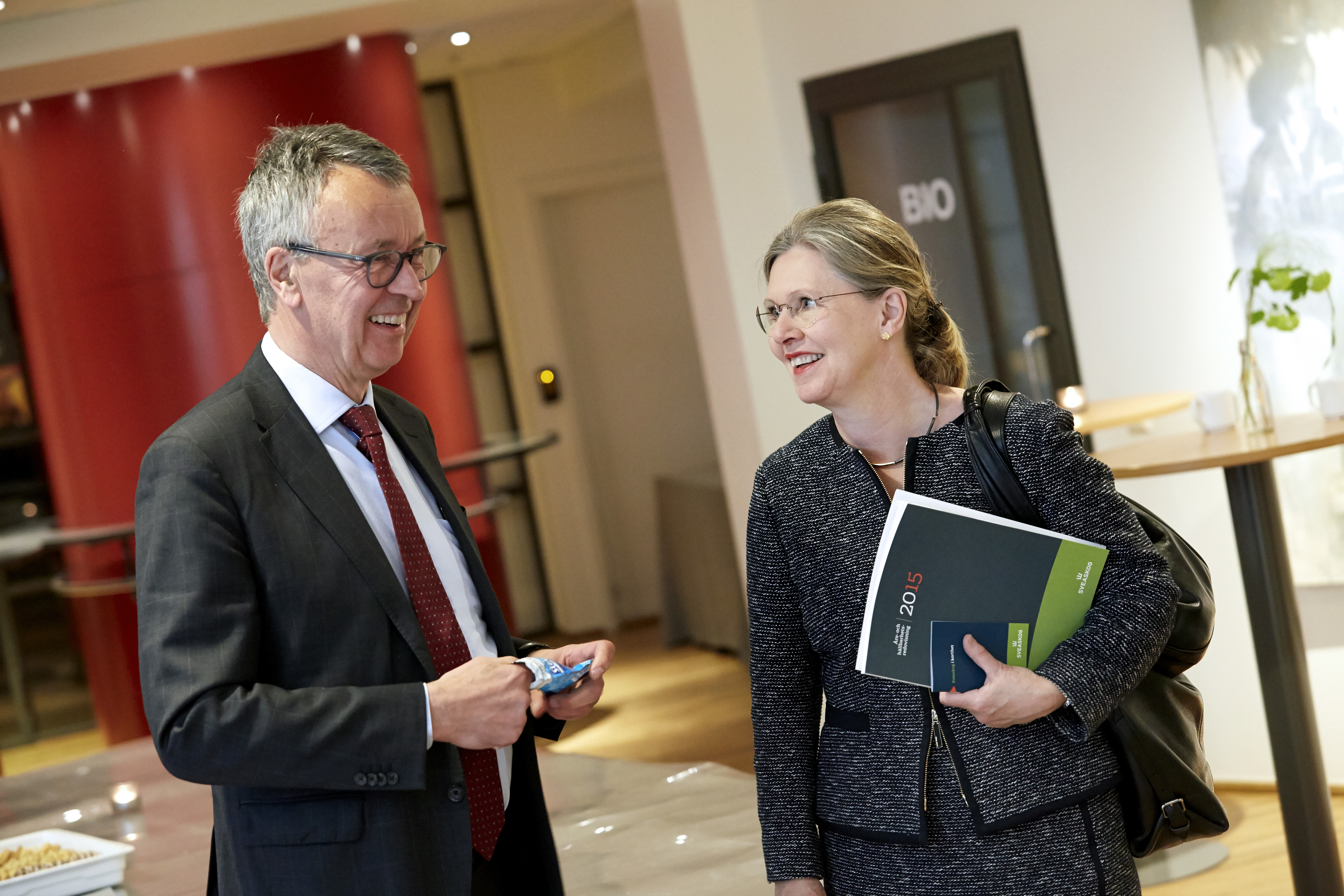 - Beskrivning: Årsstämma 2016, bolagsstämma. P-O Wedin och Eva Färnstrand, ledamot i Sveaskogs styrelse