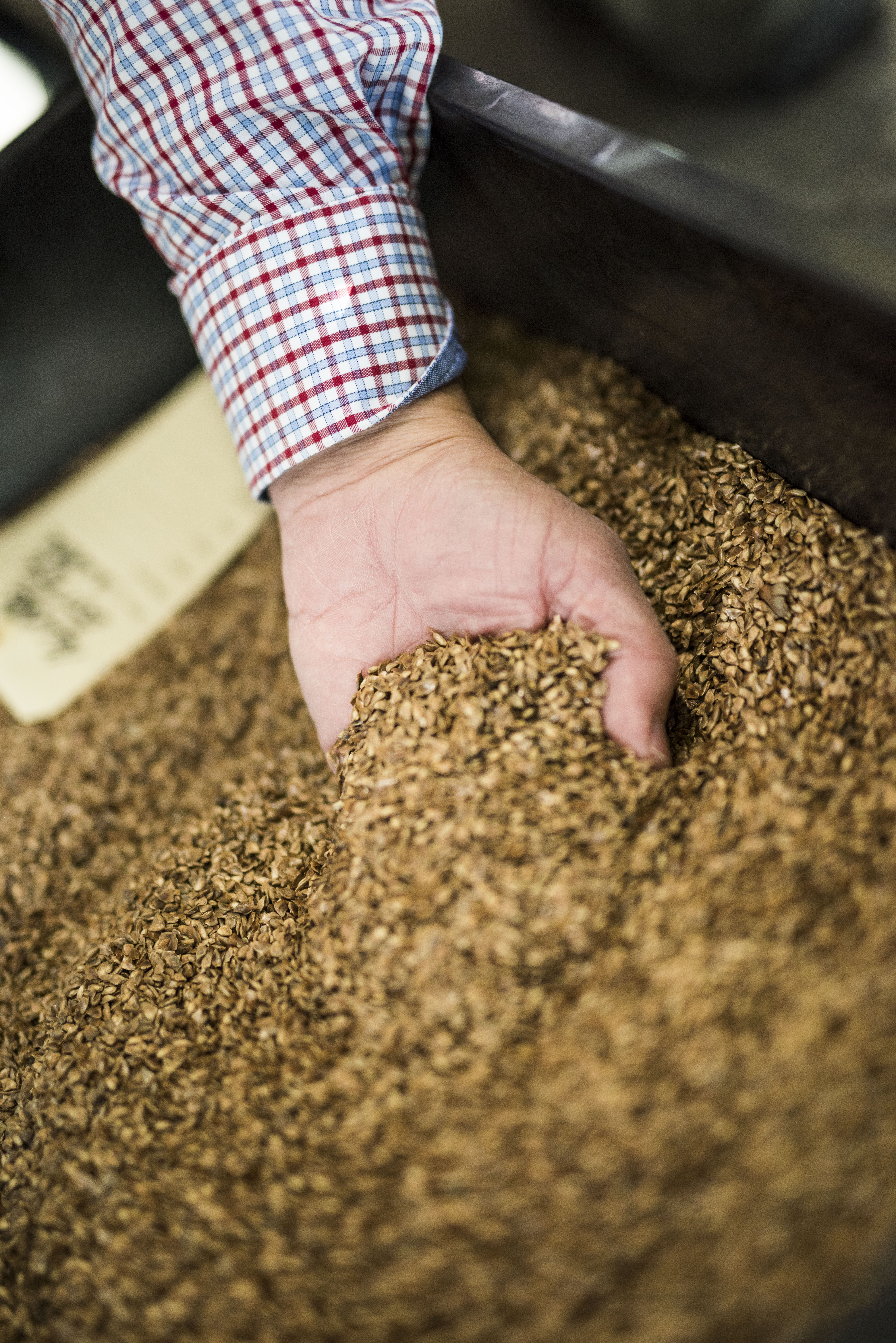 Hand som känner på frön