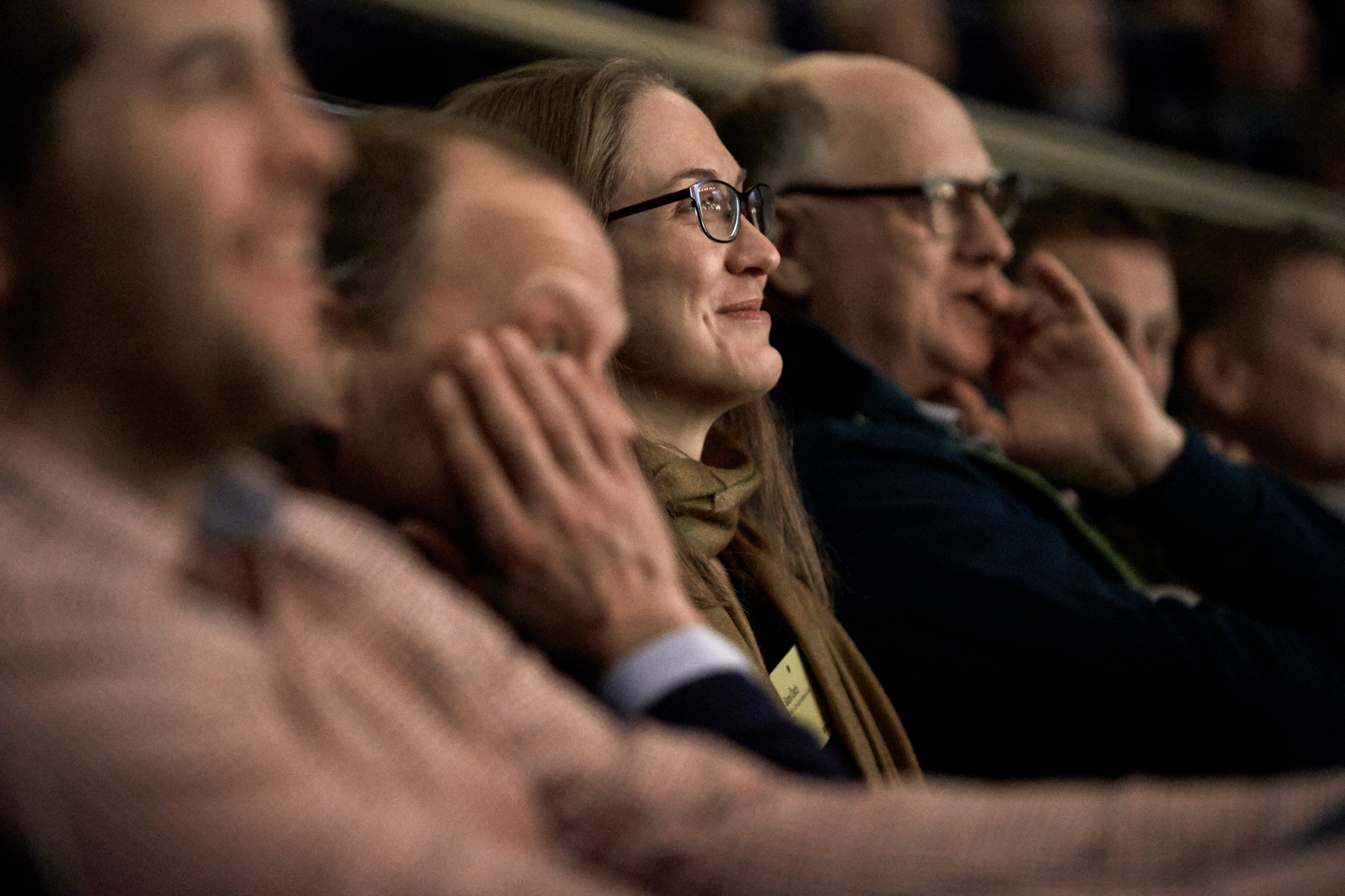 - Beskrivning: publik, medarbetare, läktare, Sveaskogsdagarna 2017, dialog, möte, hela företaget samlat, expo