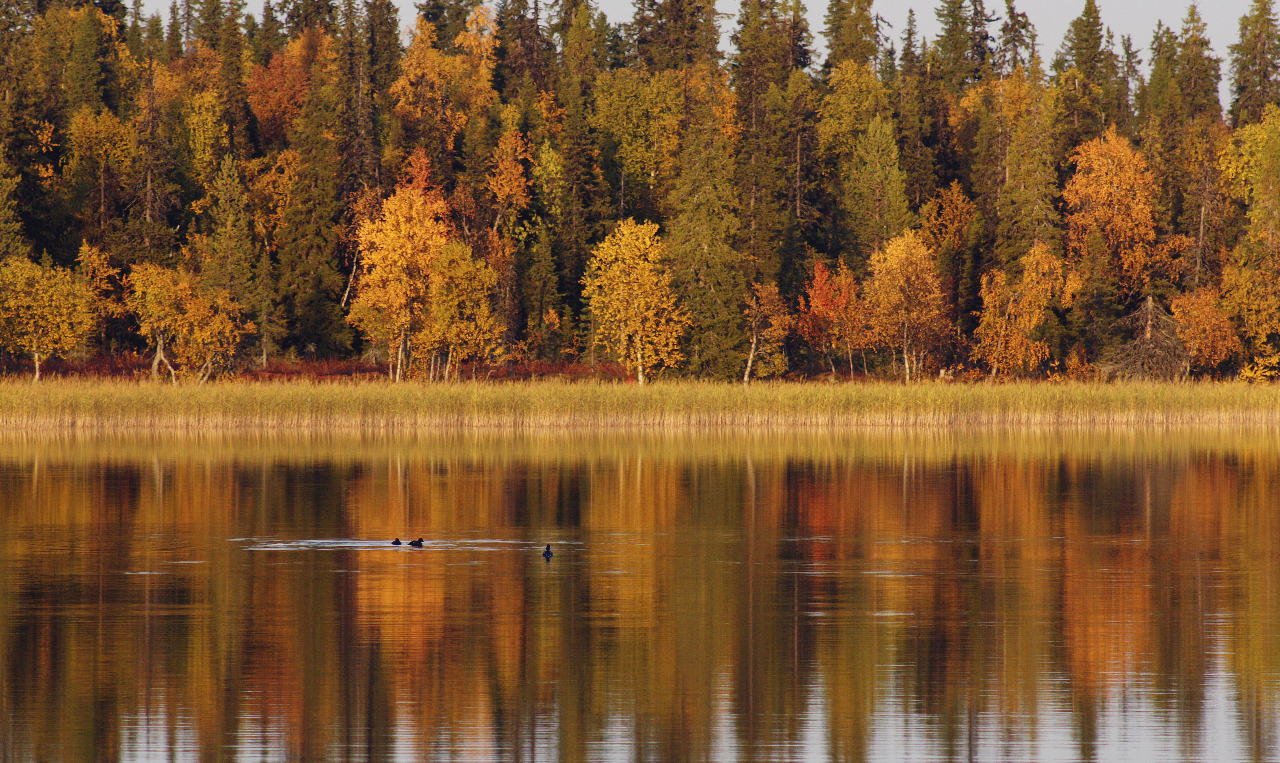 - Beskrivning: Ekopark Naakajärvi, höstfärger runt Naakajärvisjön, gräsand