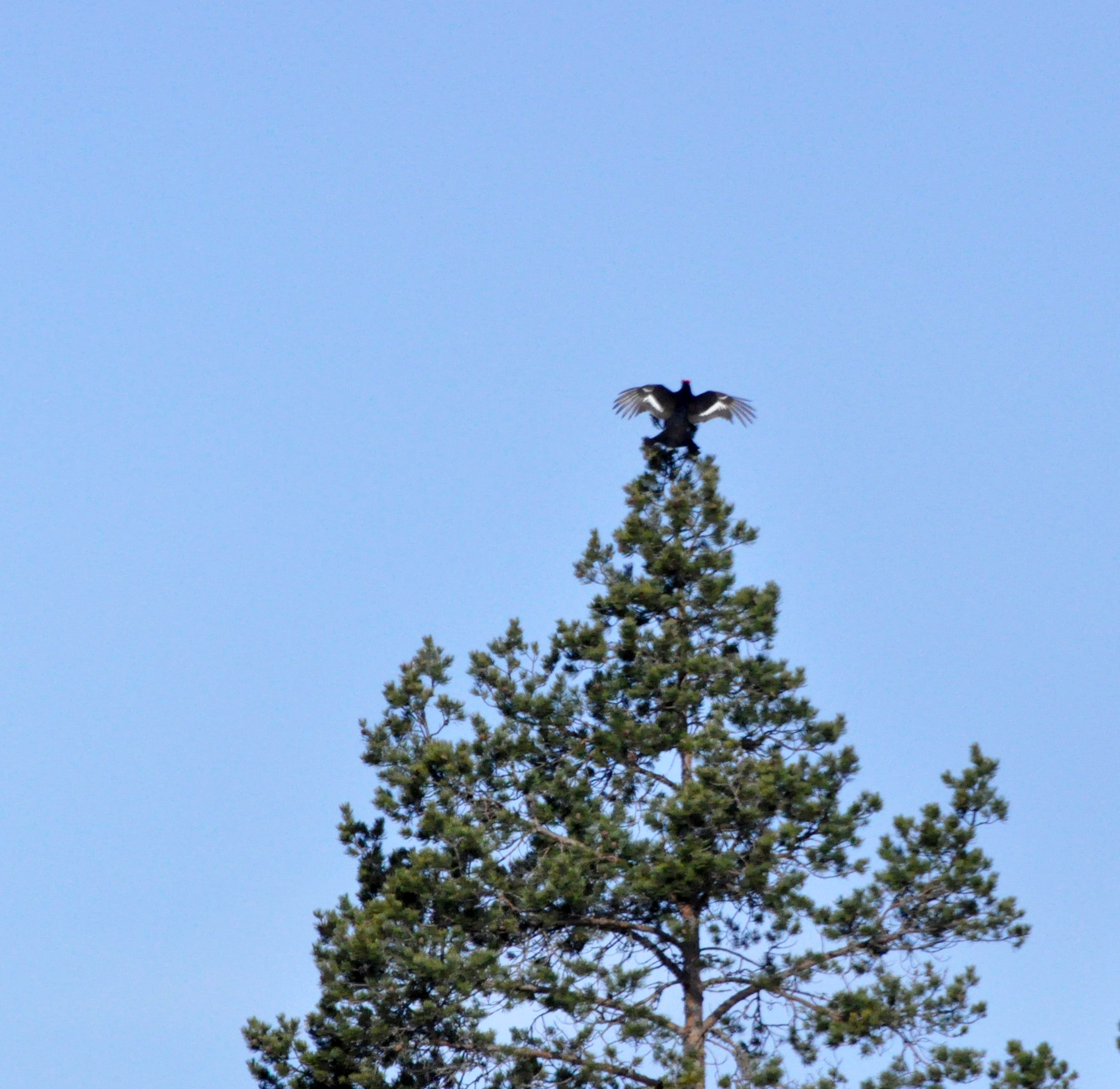 • Beskrivning: Orre, orrtupp, skogsfågel i trädtopp