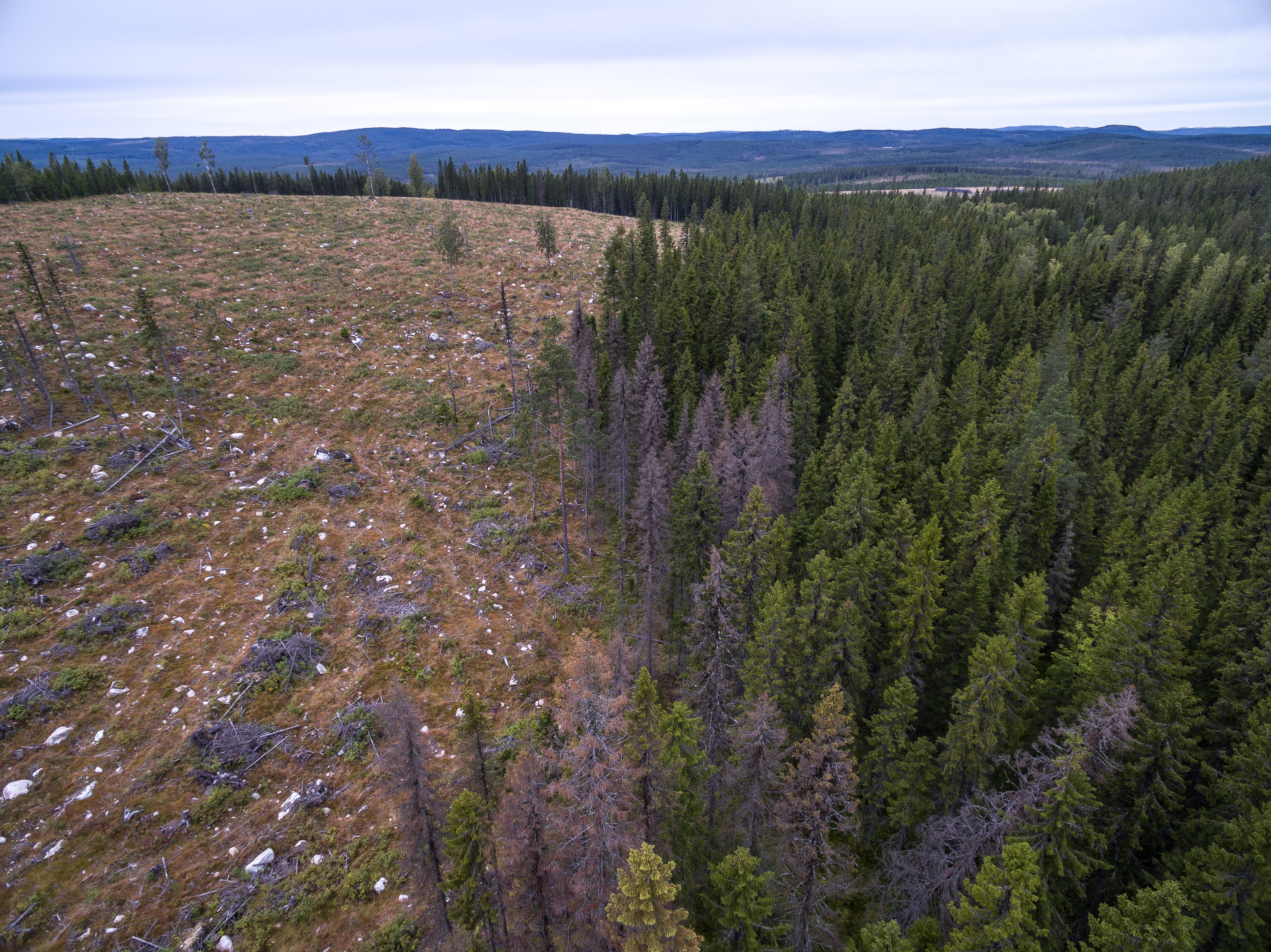 - Beskrivning: Granbarkborre-angrepp i Södra Norrland, barkborre, granbarkborre, skador på skog, barkborreangripen skog, skadade träd