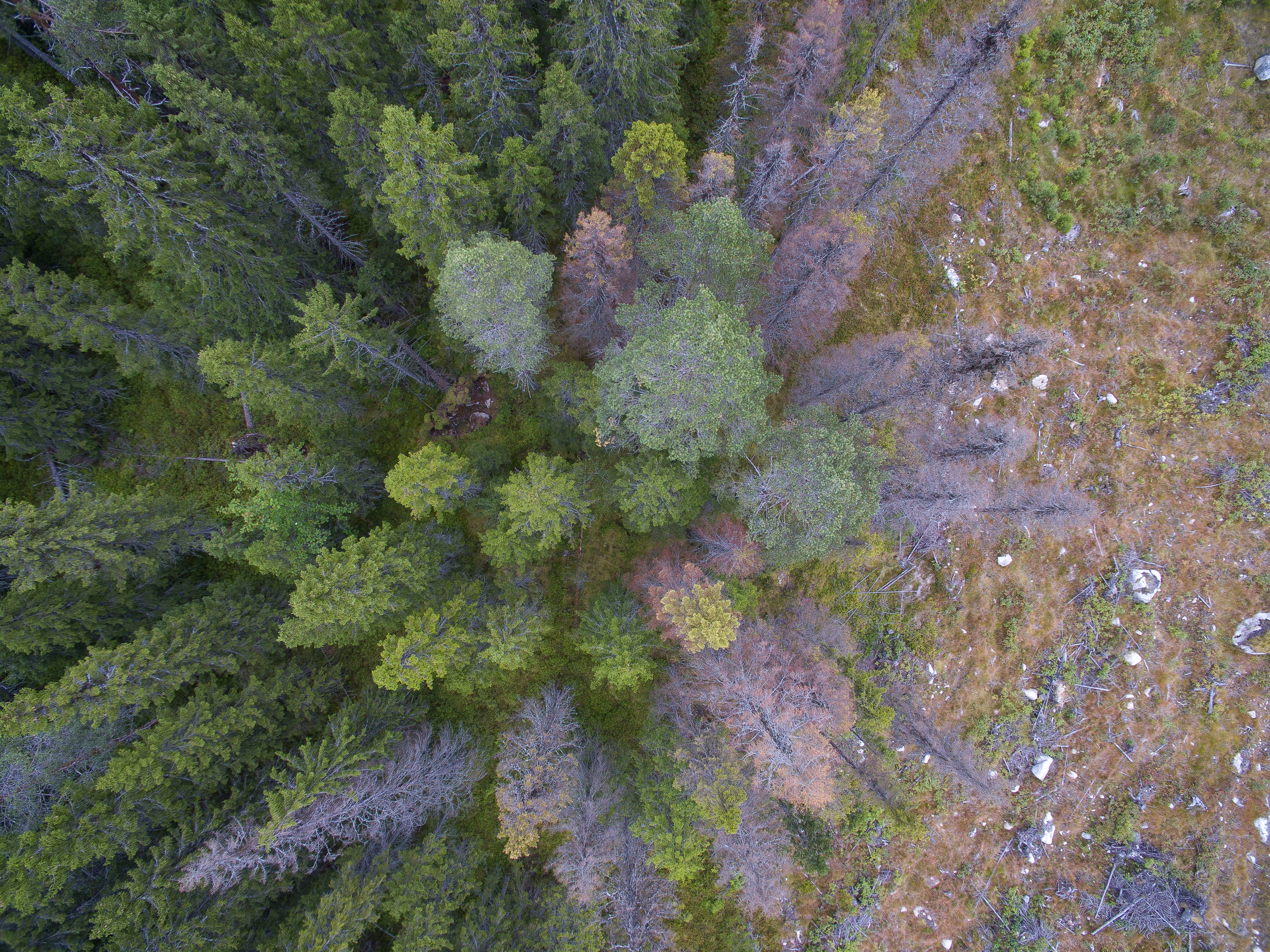 - Beskrivning: Granbarkborre-angrepp i Södra Norrland, barkborre, granbarkborre, skador på skog, barkborreangripen skog, skadade träd