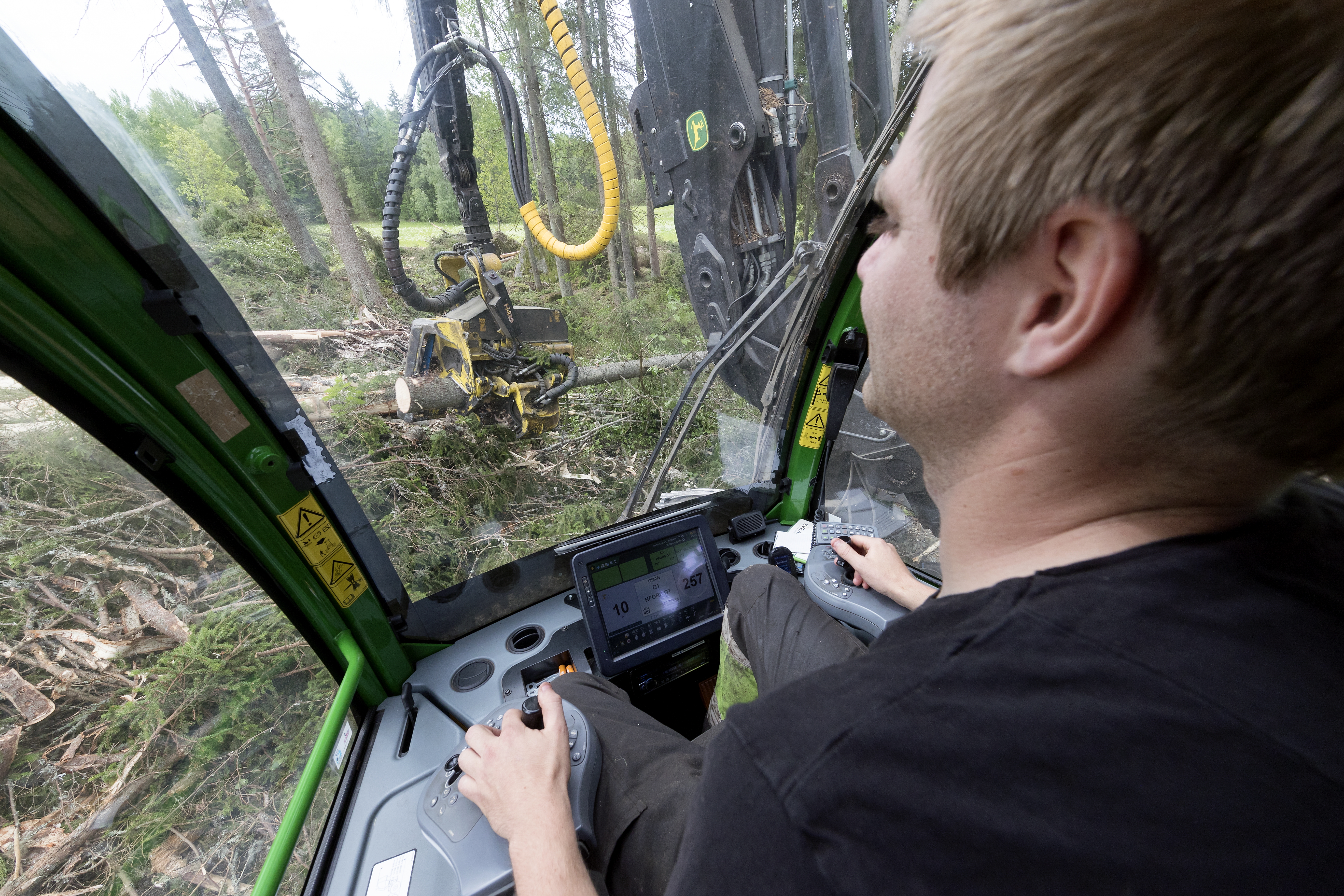 - Beskrivning: Skogen ska hanteras med respekt, I arbetet med att förvalta varje enskilt träd så att bästa möjliga värde skapas ur skogen spelar maskinlaget en nyckelroll. Genom kontinuerlig uppföljning blir misstagen färre och kunderna nöjda, Manuell mätning av stammarna, dataklave, virkeskvalitet, skärm, insida av skogsmaskin, spakar, ratt