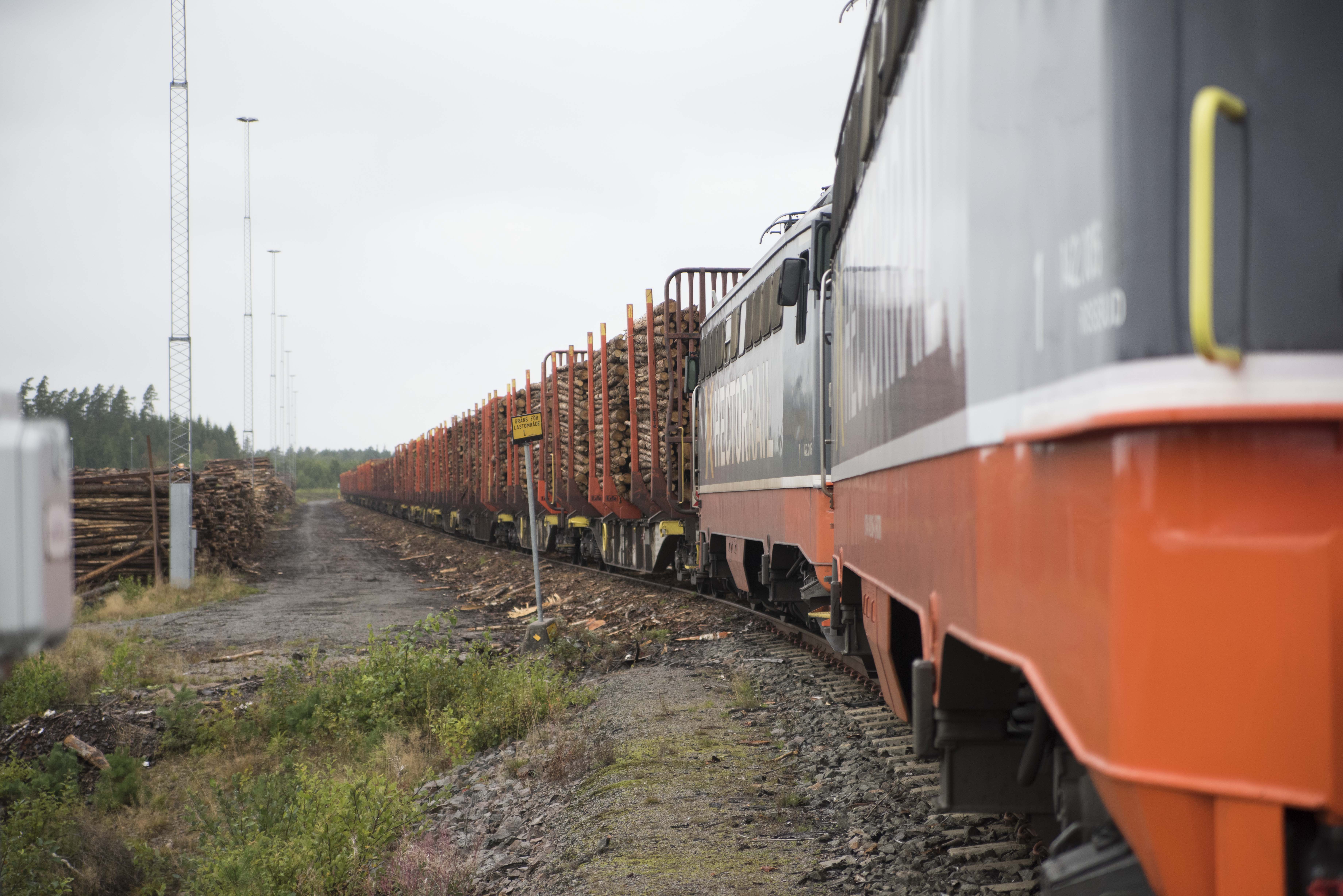 - Beskrivning: Tåglast med massaved från Stockaryd till Östrand, sommaren 2018 ska SCA:s nya stora massafabrik stå färdig, för att det ska hända behövs massor av råvara, timmerleverans