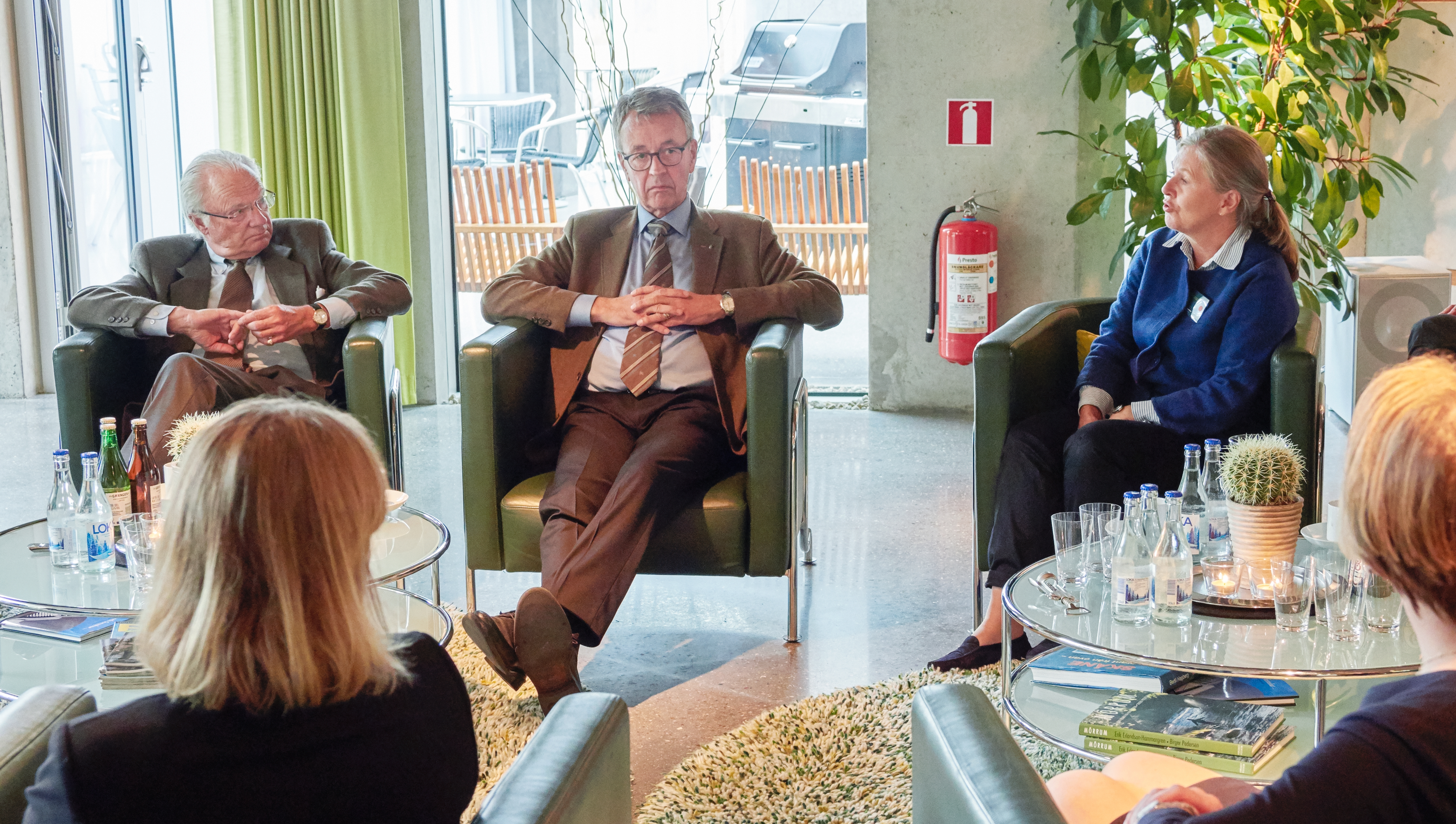 • Beskrivning: HMK Kungen Carl XVI Gustaf, Per-Olof Wedin vd, och Eva Färnstrand, Från seminariet, Naturturismens framtid i Sverige, seminarium,