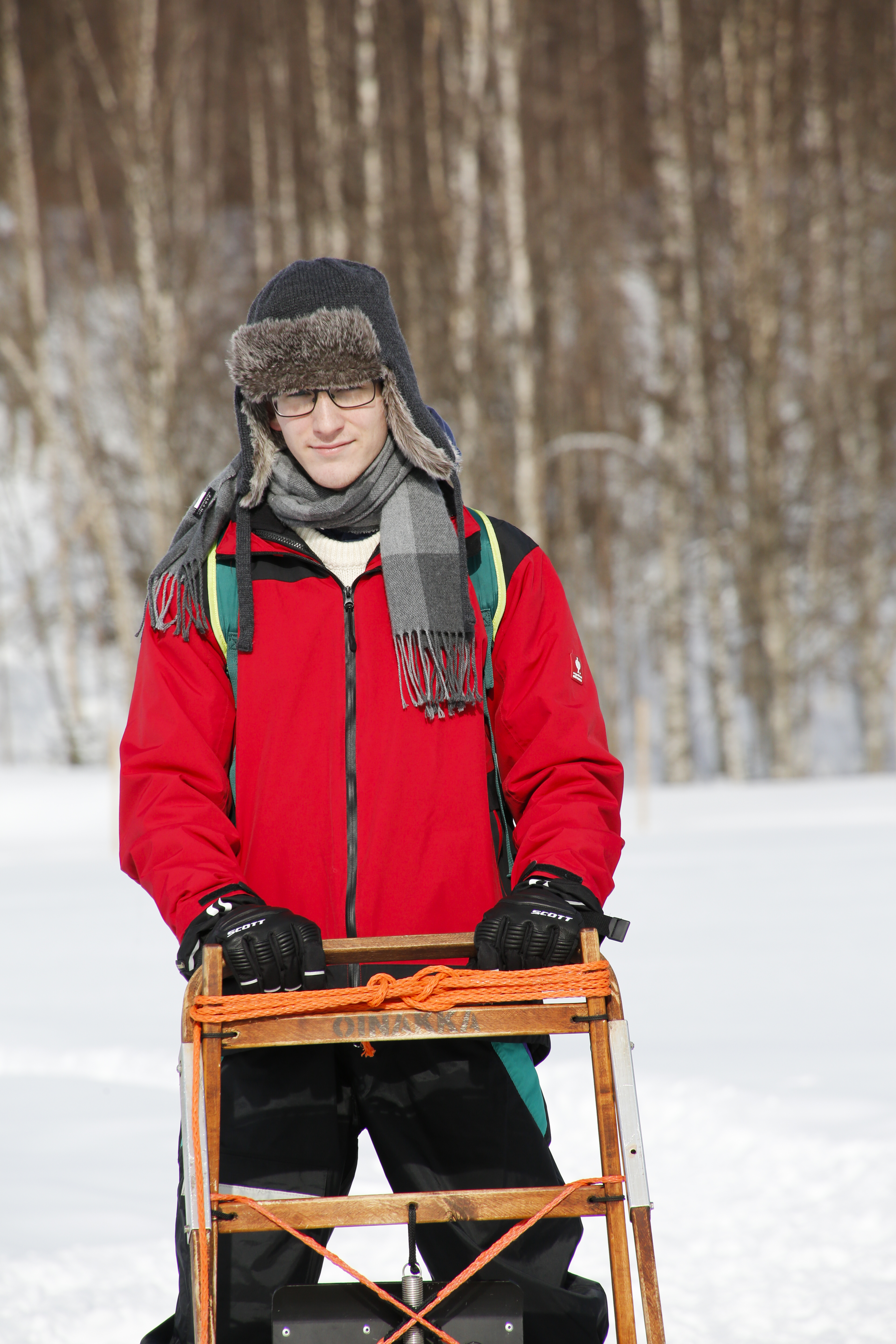 - Beskrivning: Thibault Srienz är redo. Skogarna ligger öppna, Juliane Nicklass driver Spruce Island Husky, hundspannsekipage, naturturismbild, naturturism, hundspann, hundspannsföretag, Juliane Husky Walk , Huskyhun, Granö Bäckasin