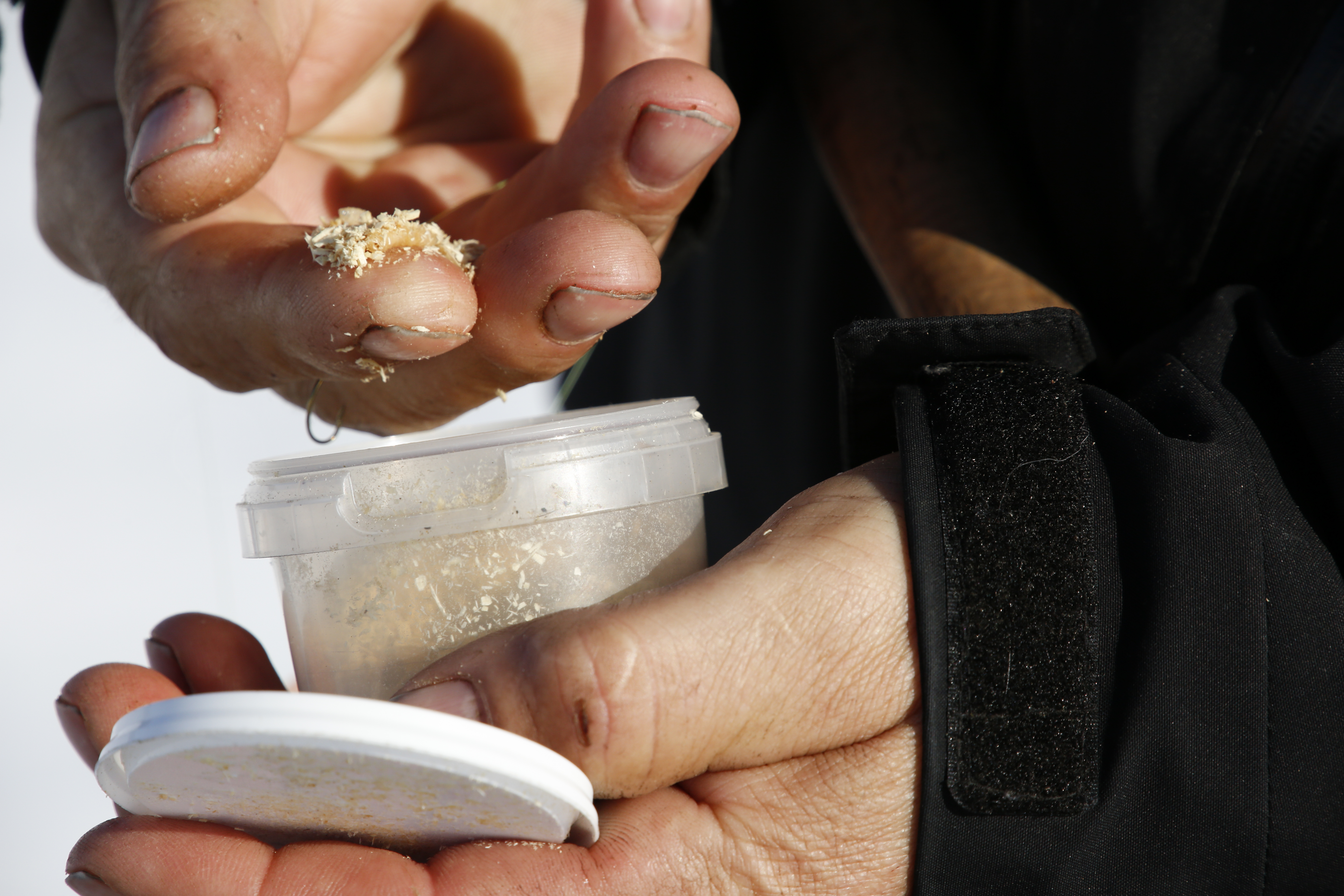Hand som håller maggotbete