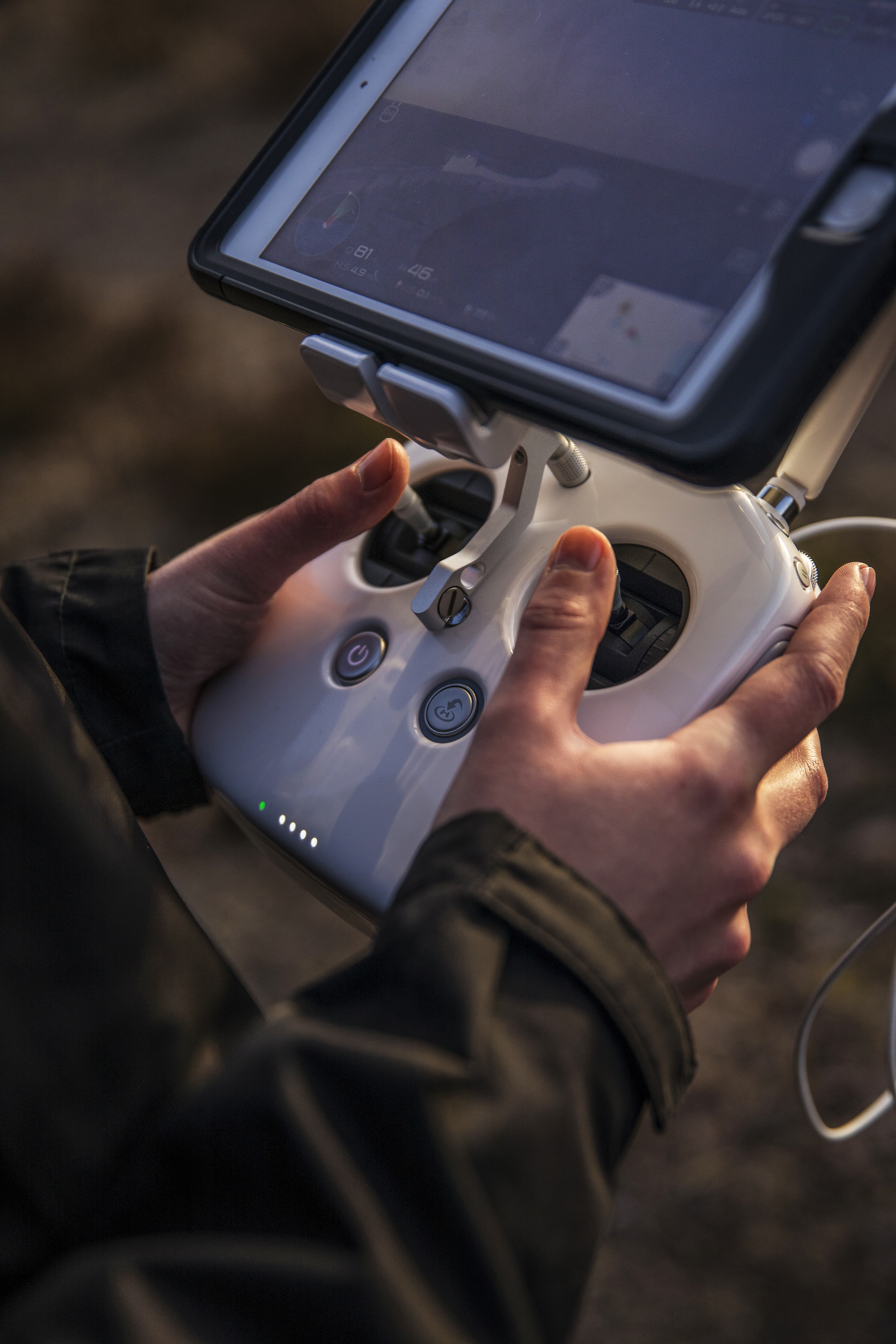 - Beskrivning: Handkontroll med drönare, drönarfoto, inventeringar, används till exempel för att fota stormskador och insektsangrepp, På upptäcksfärd med drönare