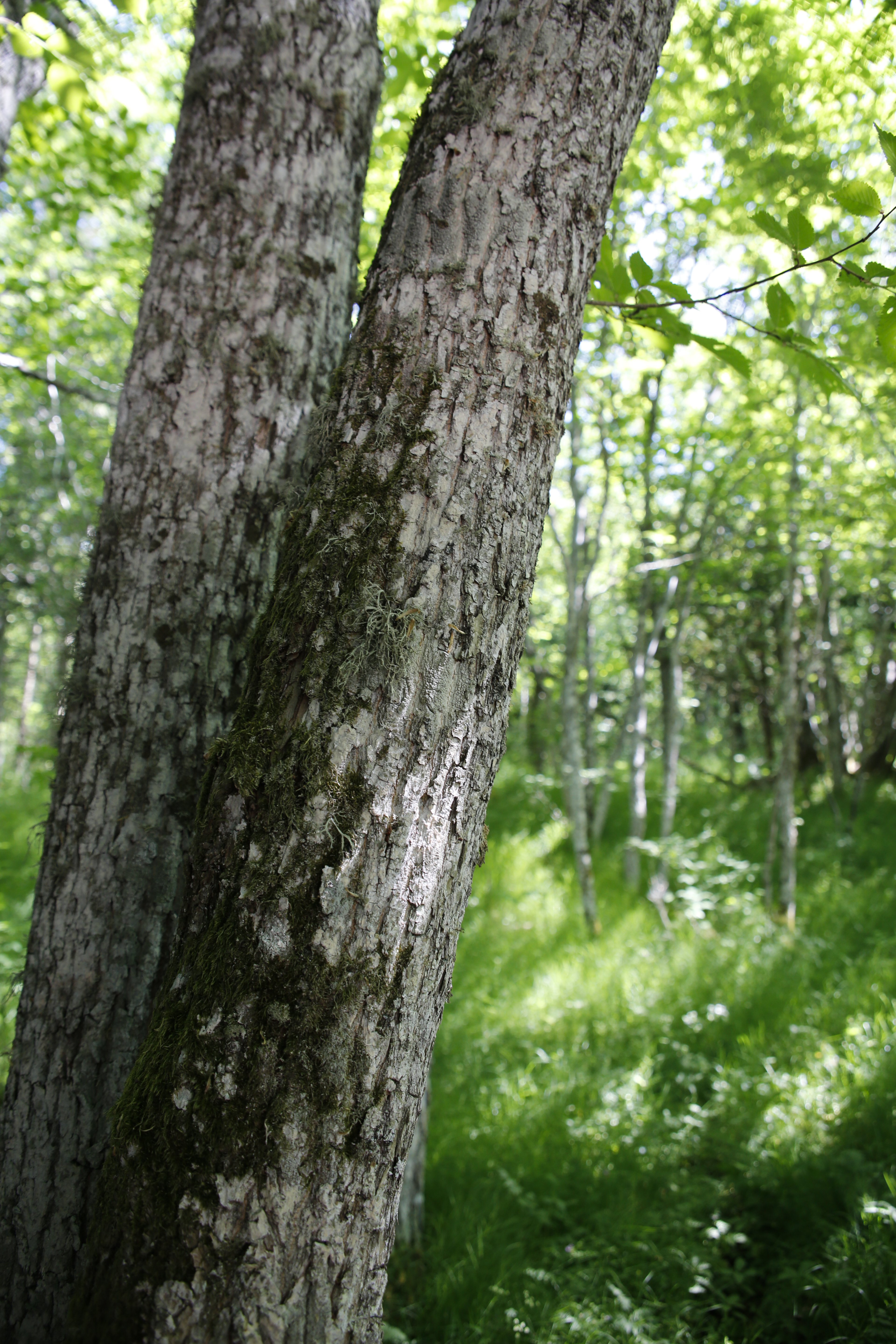 - Beskrivning: Trädstam, löv, ädellöv, bark