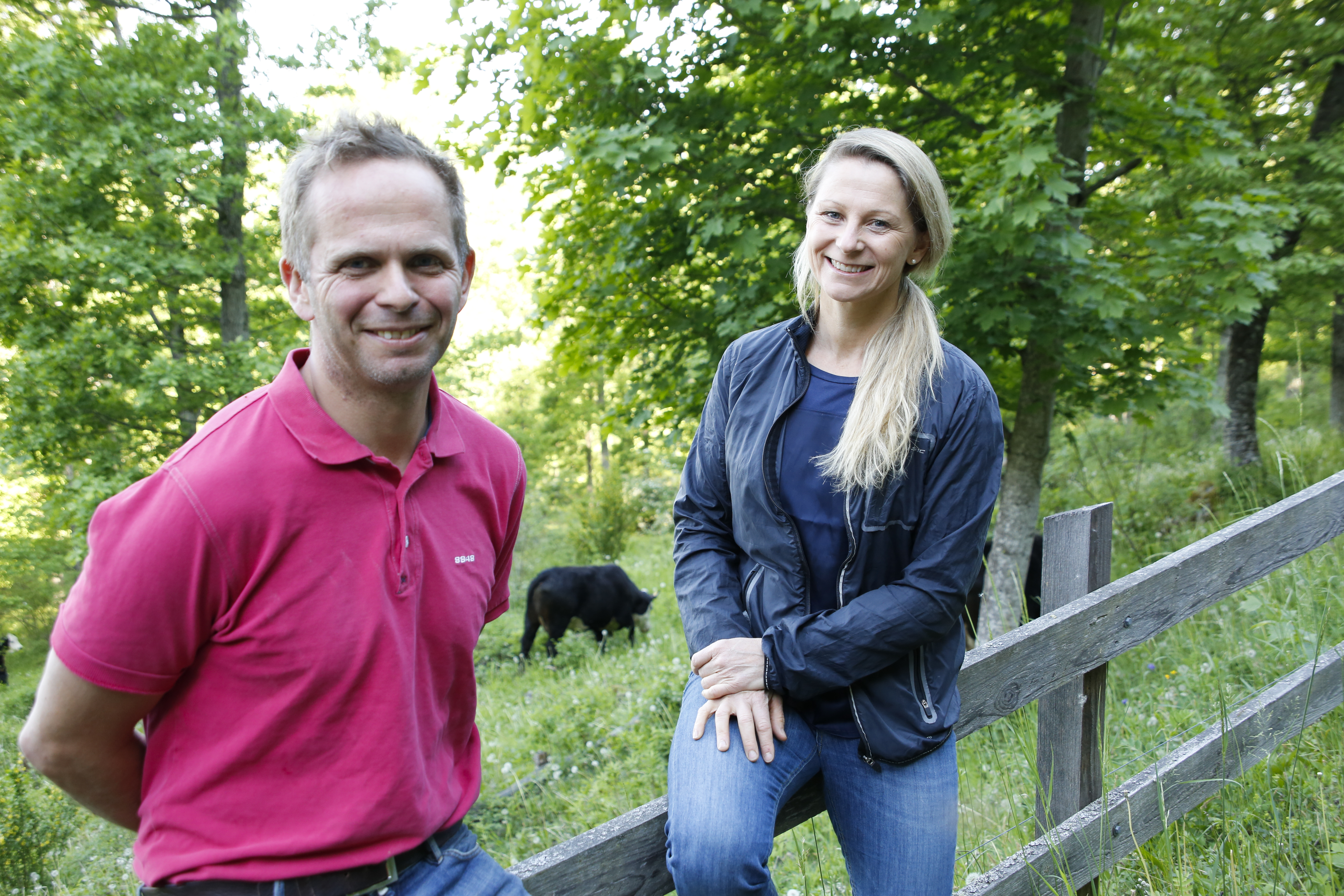 - Beskrivning: Åsa och Thomas Orrenius, Familjen Orrenius kor håller landskapet öppet i Ekopark Omberg, kobete, bete, kor