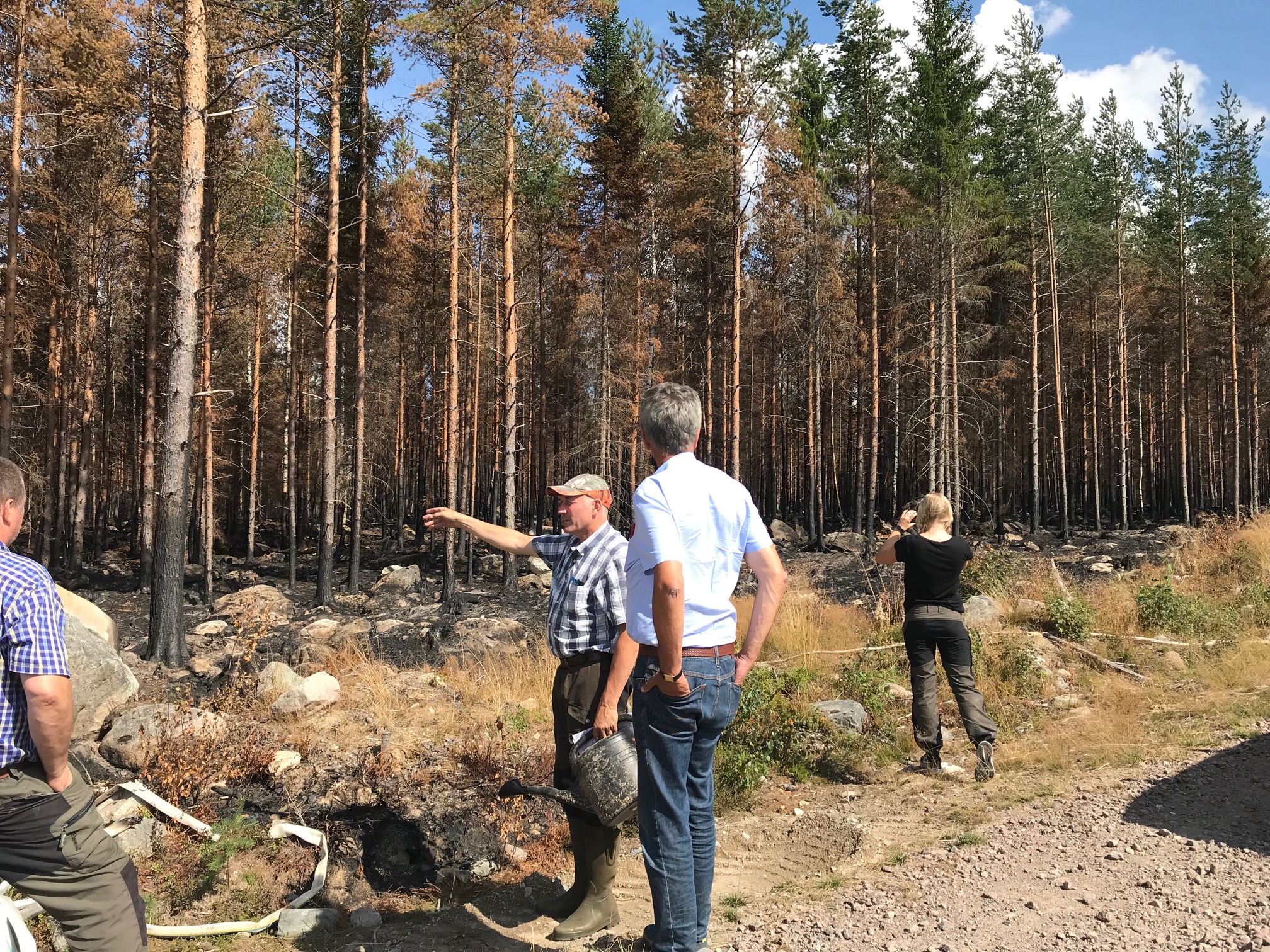 - Beskrivning: Per-Olof Wedin på besök i Ljusdal, efter bränderna, PO besökte Ljusdal och de områden runt Kårböle där det pågått eftersläckningsarbete och bevakning. Efter brand
