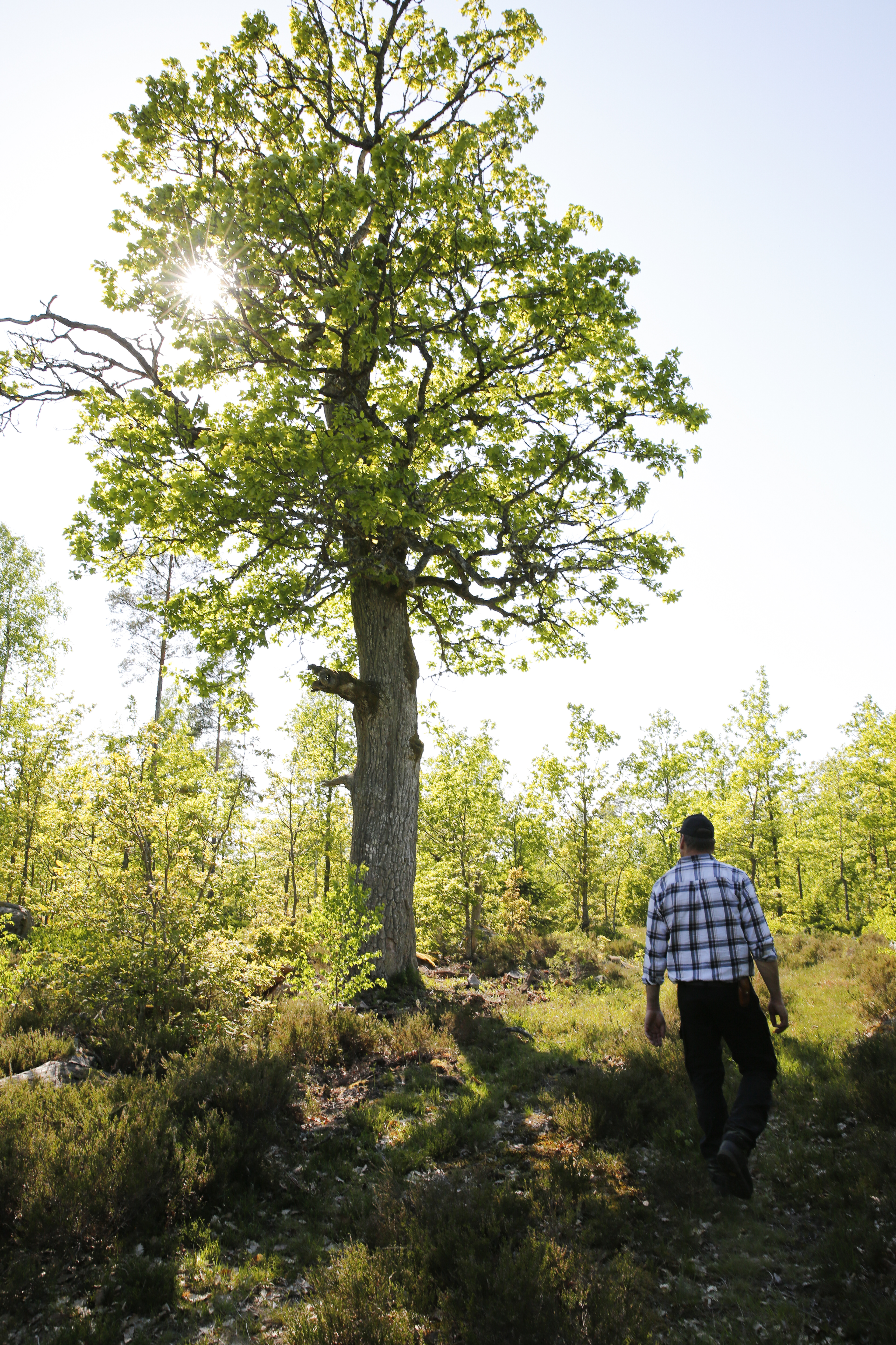 - Beskrivning: Jan Dahl, Frihuggen ek i tidigare produktionsskog, Med aktiv skötsel skapas nya naturvärden, Trots att de flesta arter gynnas av gammelskog och död ved visar ekoparkssatsningen att flera naturvärden kan kopplas till en aktiv skötsel. I synnerhet i de södra delarna av landet där Sveaskog arbetar intensivt med att skapa och förstärka redan befintliga naturvärden. Hittills har Sveaskog restaurerat drygt 4300 hektar skogsmark i ekoparkerna. naturvård, naturvårdsinsatser