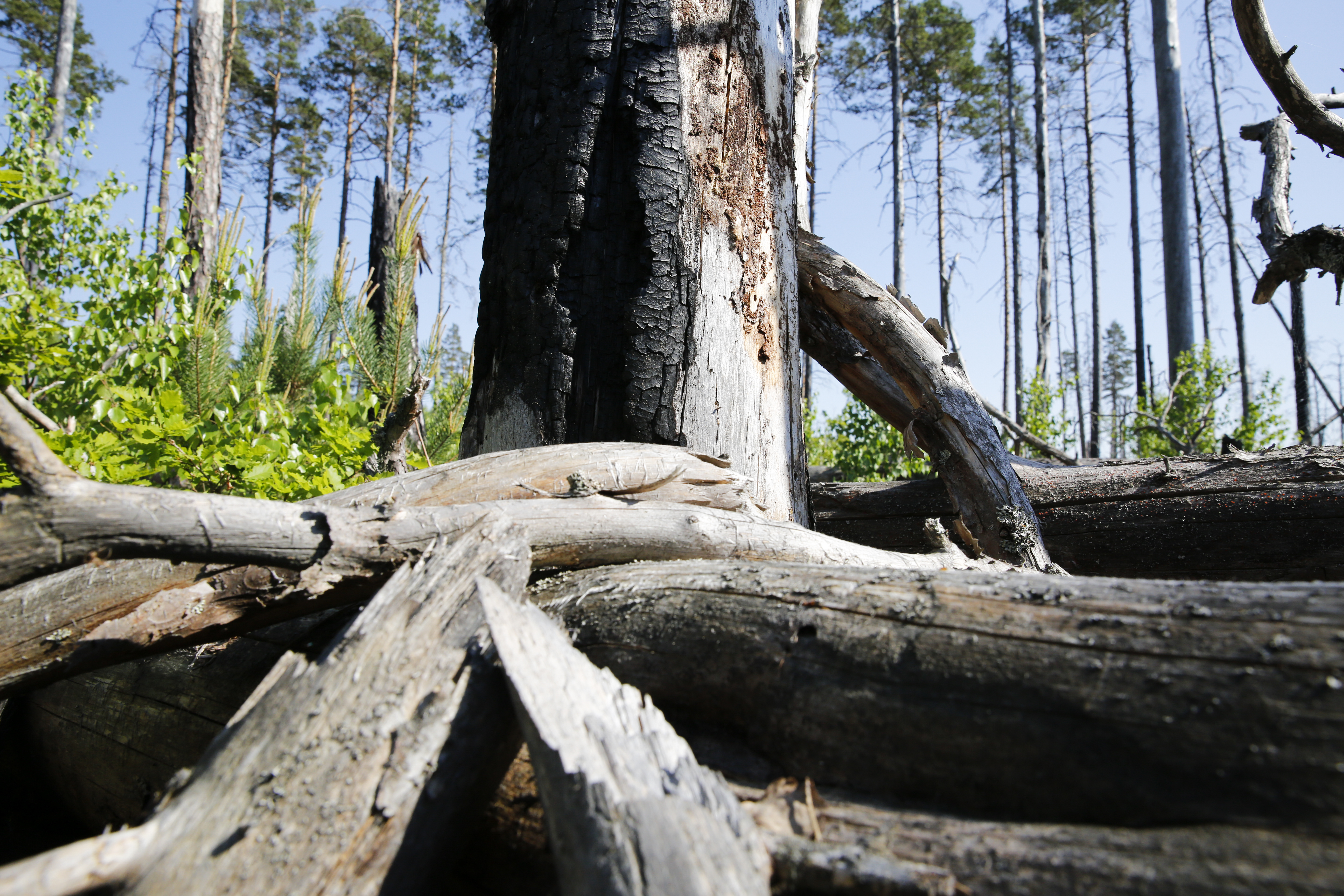- Beskrivning: Branden har skapat mängder med stående och liggande död ved, Med aktiv skötsel skapas nya naturvärden, Trots att de flesta arter gynnas av gammelskog och död ved visar ekoparkssatsningen att flera naturvärden kan kopplas till en aktiv skötsel. I synnerhet i de södra delarna av landet där Sveaskog arbetar intensivt med att skapa och förstärka redan befintliga naturvärden. Hittills har Sveaskog restaurerat drygt 4300 hektar skogsmark i ekoparkerna. naturvård, naturvårdsinsatser, död ved