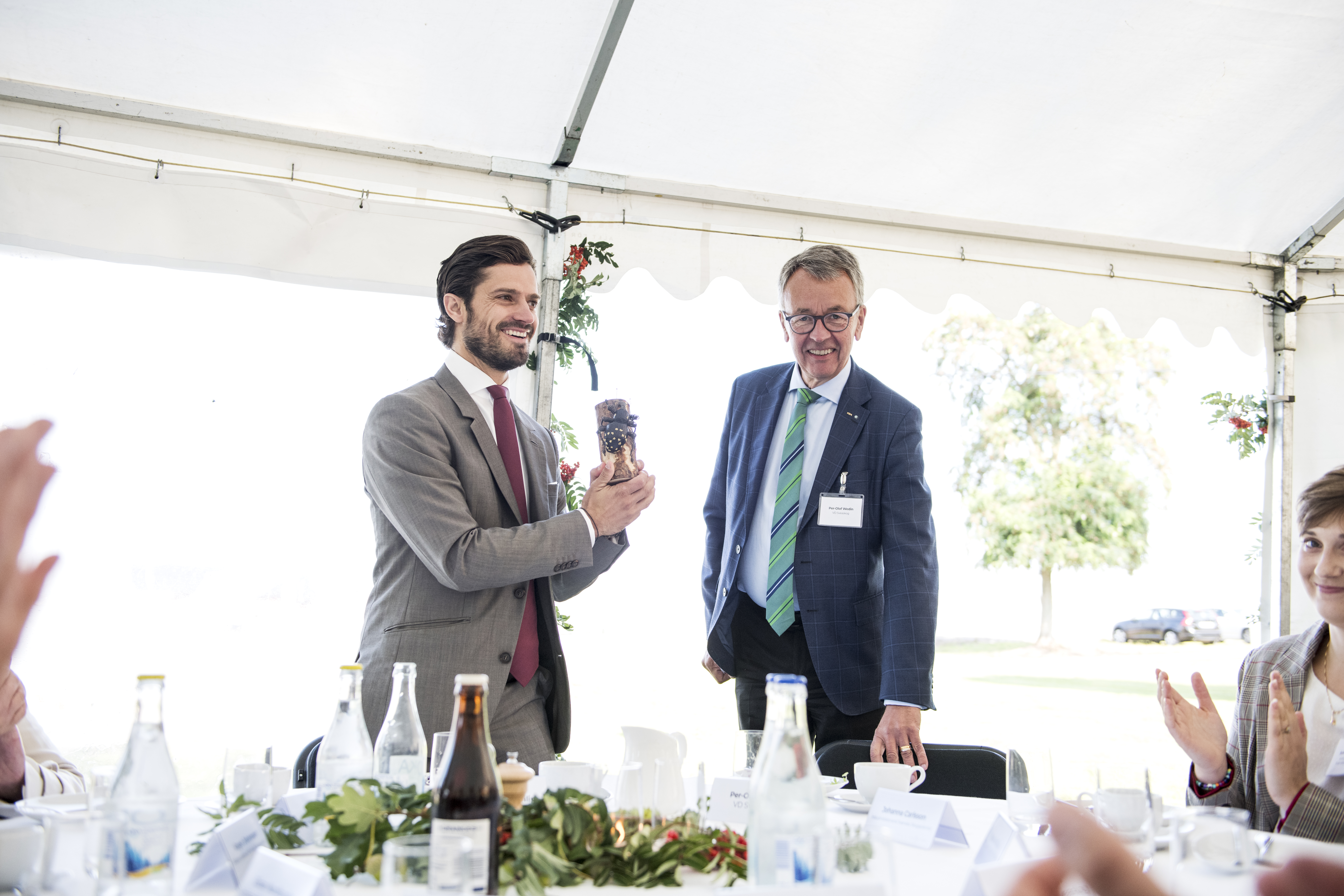 - Beskrivning: Prins Carl Philip och PO Wedin H.K.H. Prins Carl Philip, SSP, svenska skogsplantor, besök, Carl Philip Edmund Bertil, Prins av Sverige, Hertig av Värmland besöker Lugnets plantskola.