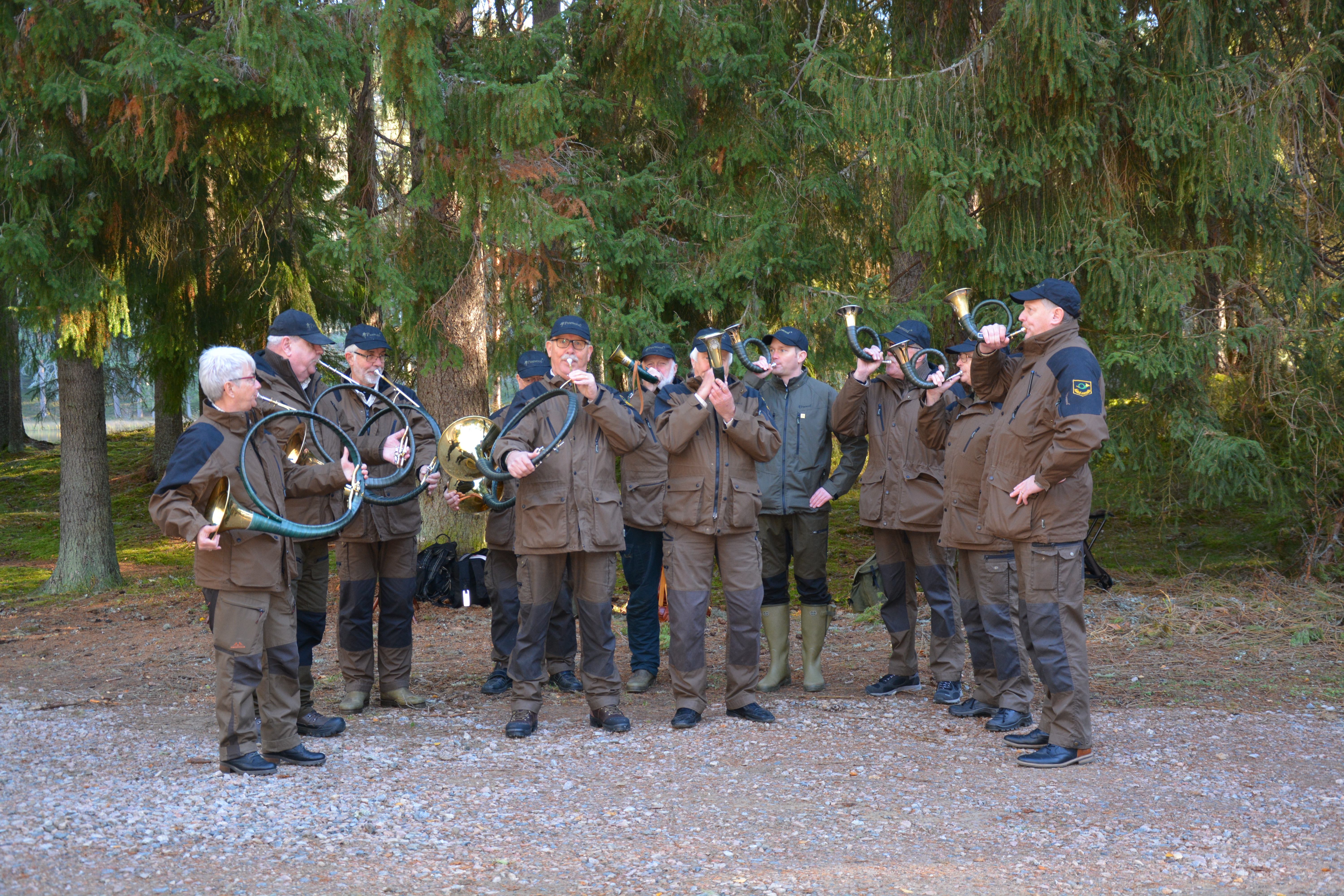 - Beskrivning: Kungajakt, Kunglig jakt i Malingsbo Kloten, H.M. Konungens privata älgjakt i Malingsbo Kloten, älgjakt, Avslutningsjägare, blåsorkester