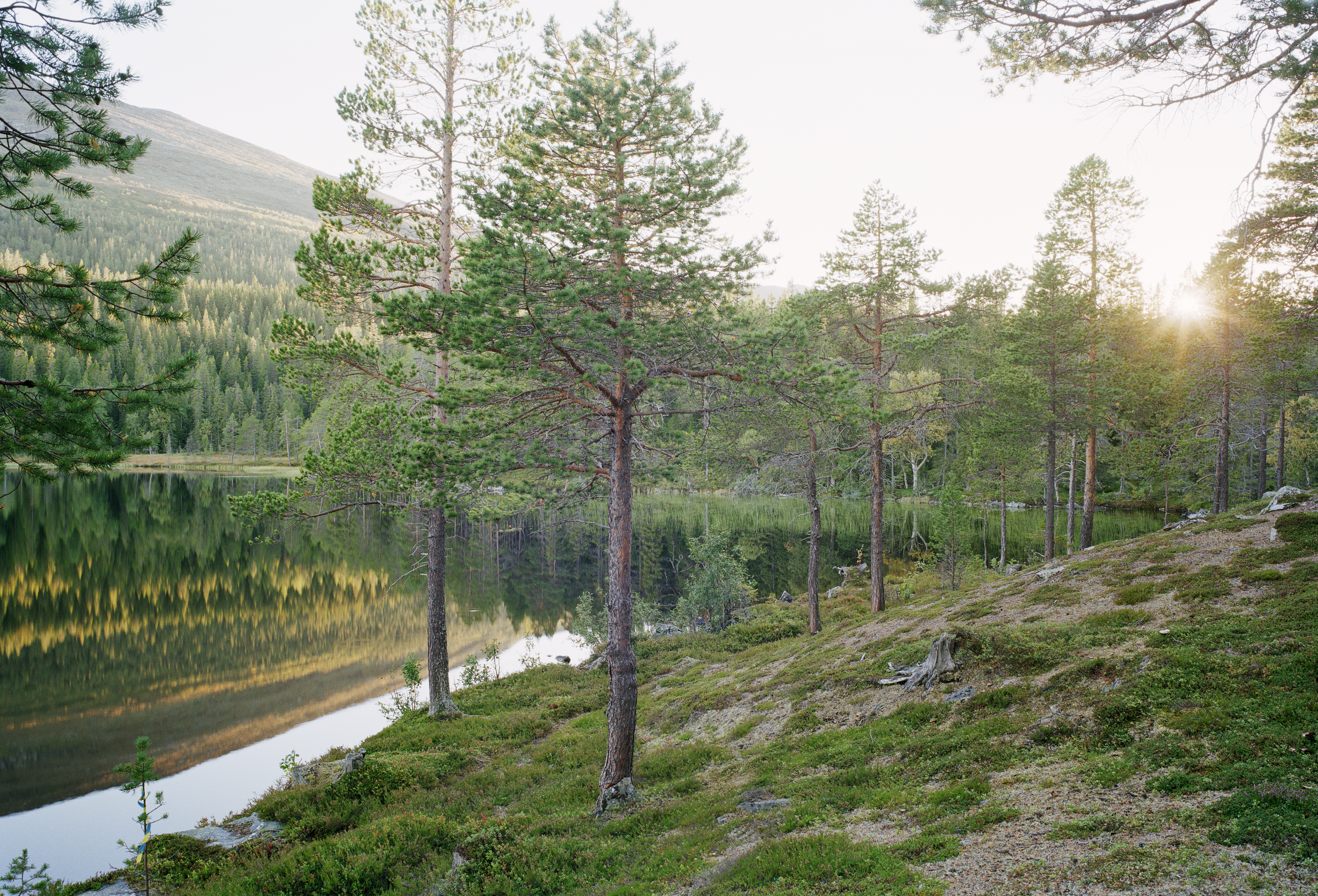 - Beskrivning: Landskap med tallar och sjö, Ekopark Håckren