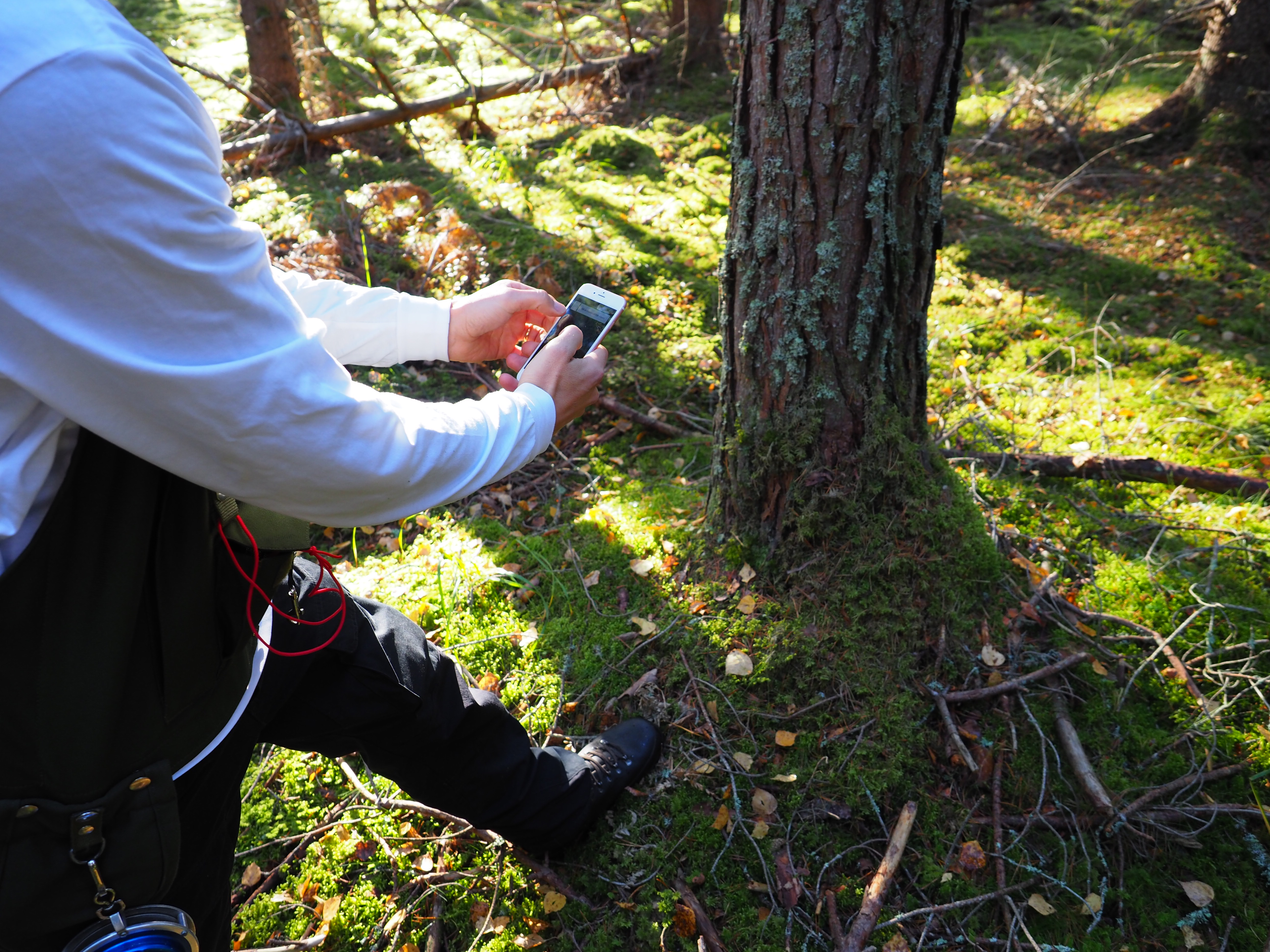 - Beskrivning: Johan Ekenstedt mäter trödhöjd med hjälp av Sveaskogs mobilapp för höjdmätning av träd, Arboreal Trädhöjd.